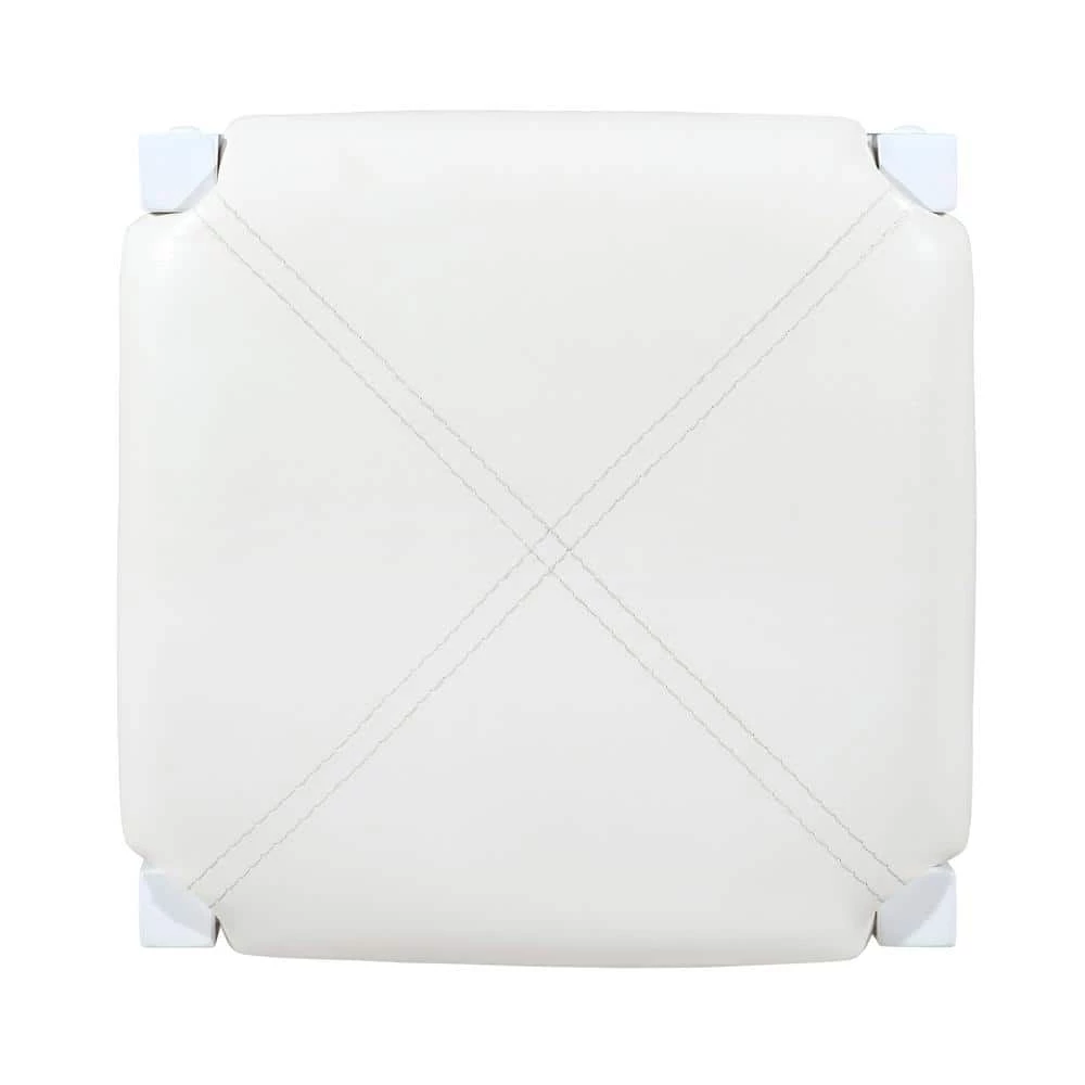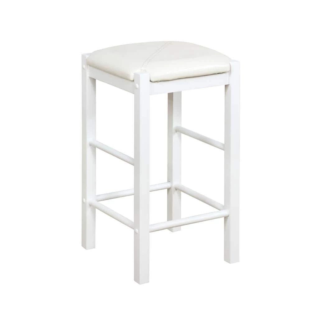 Tavern 3 Piece Counter Set with space saving convenience. This set features a elegant rectangular table on long sturdy legs with two backless counter height stools with padded, white faux leather upholstered seats. Made from solid woods and a faux marble top. The white finish of the base and legs gives this piece an elegant and sophisticated appeal. The stools tuck neatly under the table when not in use. Great for kitchen, dining area, den or any place your entertain.