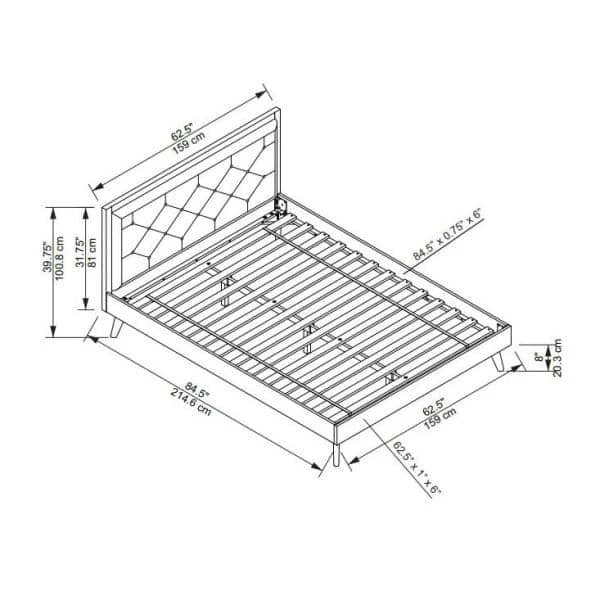 Wood and Upholstered Ames Mid Century Uph HB Queen Oatmeal modern design will elevate the master bedroom in style and elegance. Button tufted headboard in a rich oatmeal colored fabric. Includes the headboard, footboard, side rails and slates. Perfect for either memory foam or spring mattress.