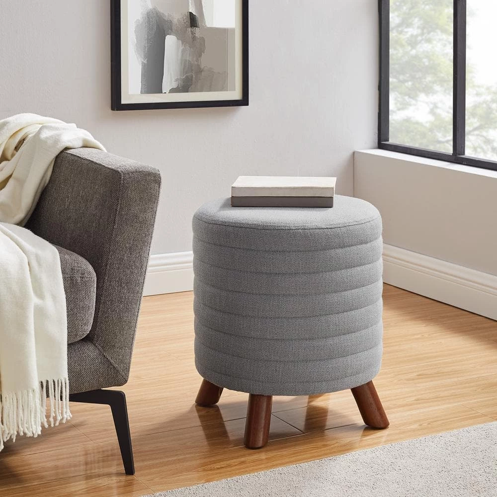 Fun and functional, this uniquely styled accent Anslee Light Grey Polyester Ottoman fits under a makeup vanity or desk, or provides comfortable extra seating for game night. Tailored upholstery in a grey fabric also makes it a comfy ottoman. Use in any room of the house to create just the look you want.