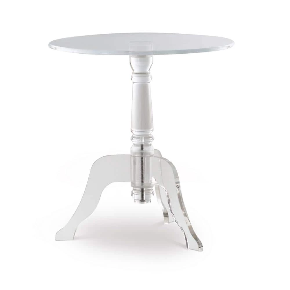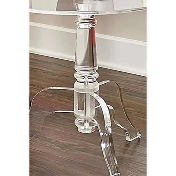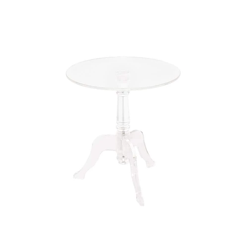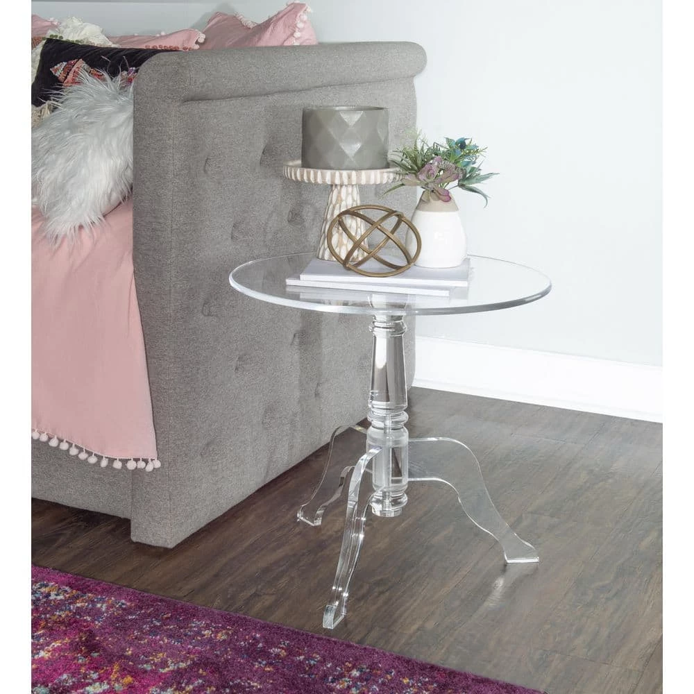 Lighten up and modernize your space with the Clear Acrylic End Table. Crafted of thick, smooth acrylic, this end table is the perfect versatile addition to an array of decor styles. The generous table top will accommodate your display needs, while the crystal clear see-through design minimalized its presence in your room. The curvy legs and decorative base add an edge of glamour to the accent piece.
