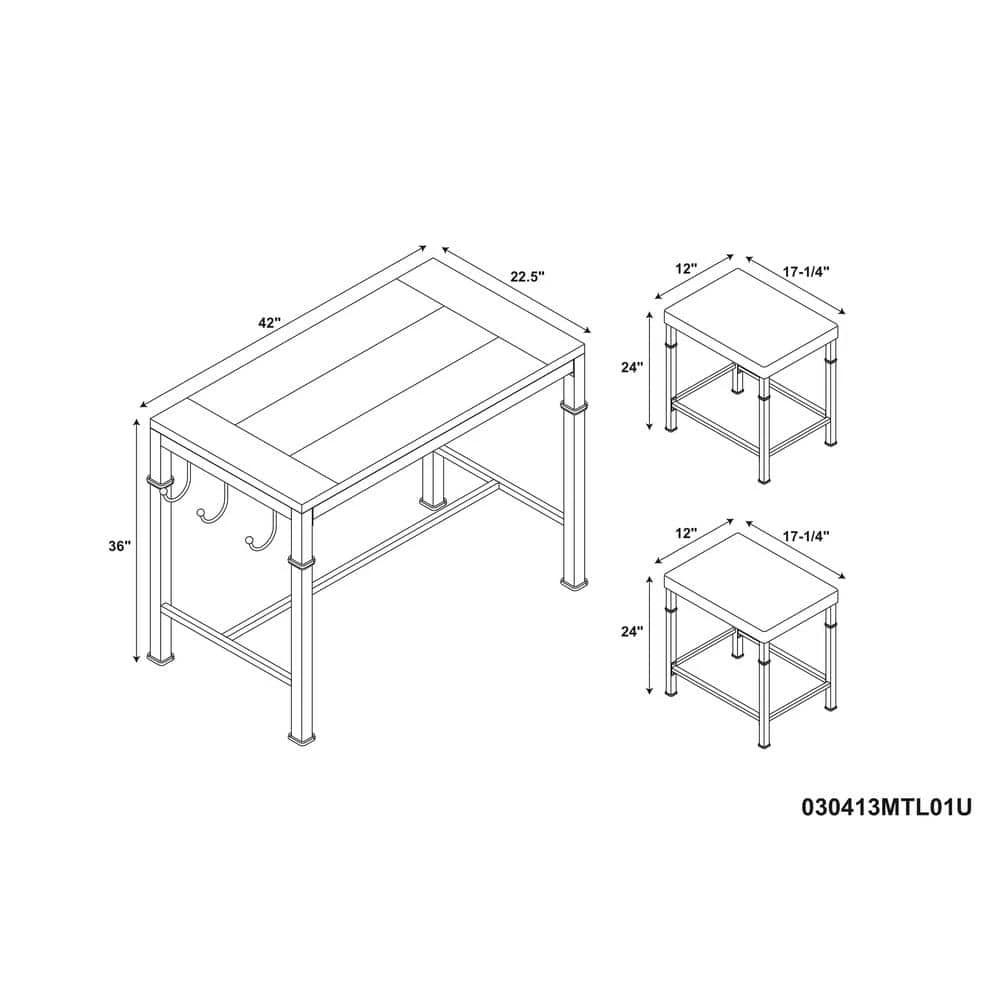 - Includes 1 table and 2 stools