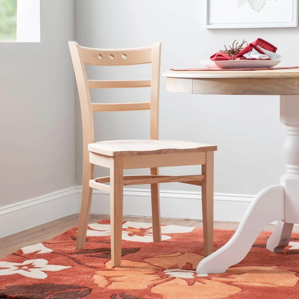 Simple, yet brimming with possibilities, this classic Betty Chair Unfinished Wood Seat is the perfect addition to a wide array of decor settings. The sturdy beechwood frame is left unfinished so you can paint or stain it in the color that best suits your vision. The top rung of the minimal ladder backrest is adorned with 3-diamond cutouts, understated yet pleasing to the eye. This pair arrives fully assembled, ready to make a difference in your home right out of the box.