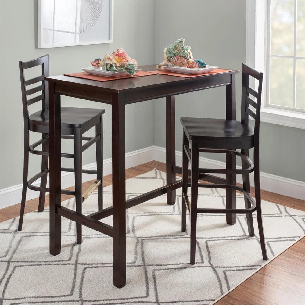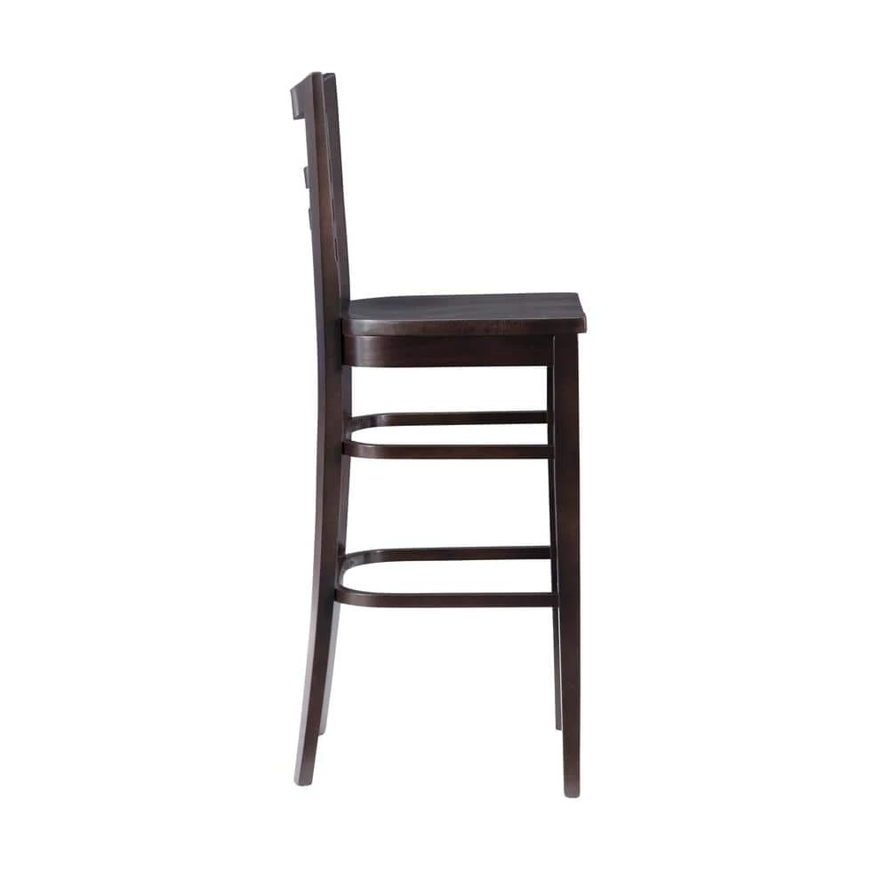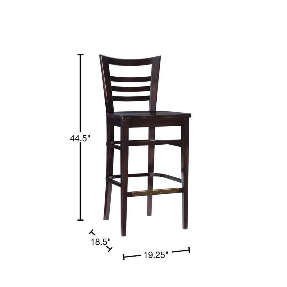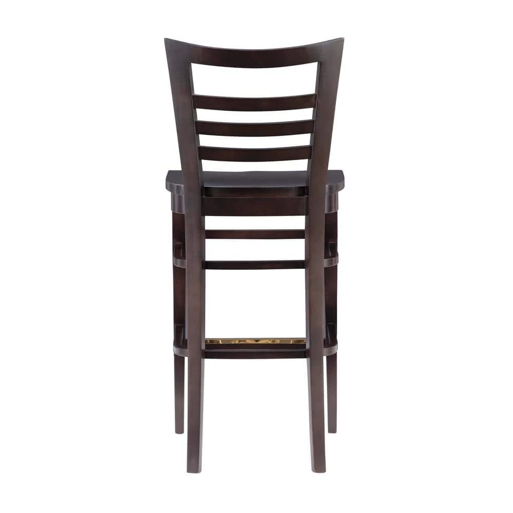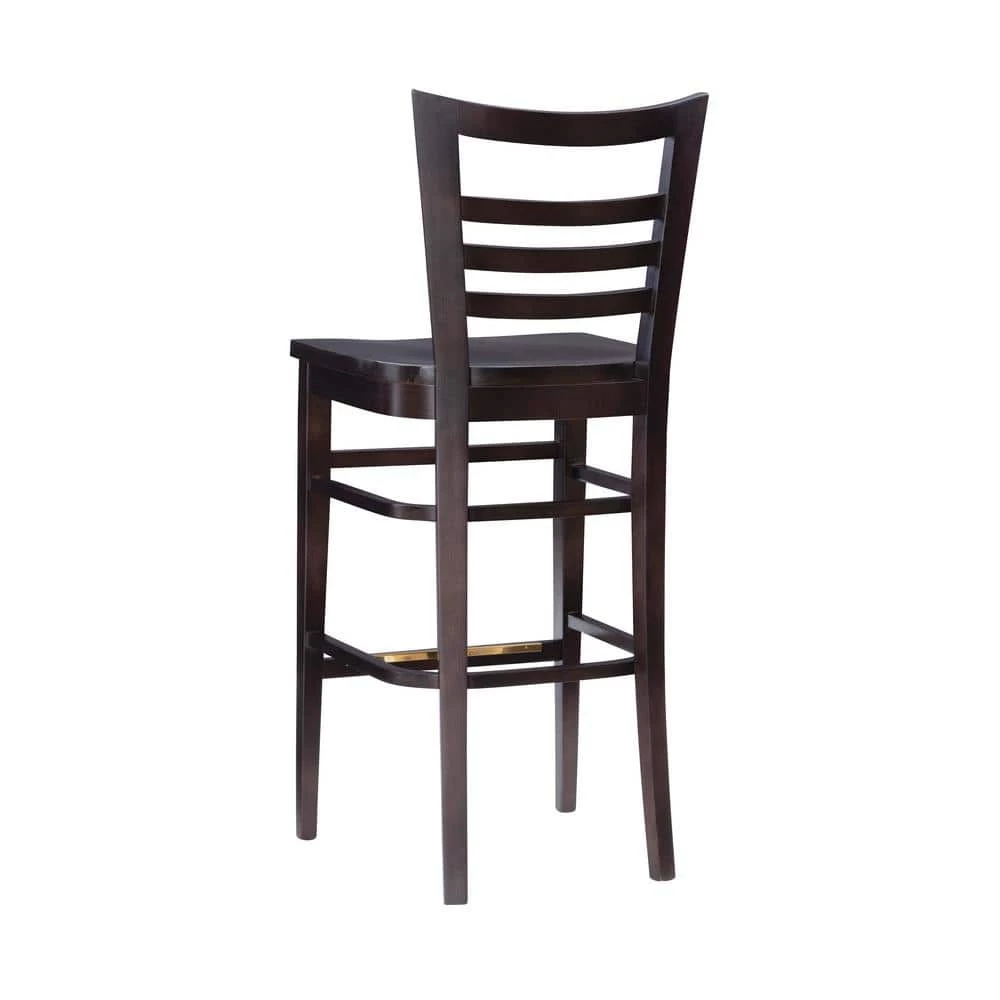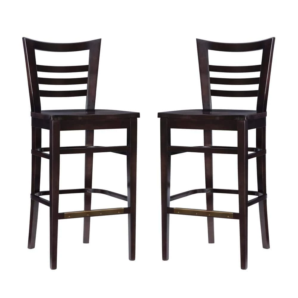 Outfit your home bar or kitchen island in classic style with the Brian 44.5 in. Brown Curved Wood Ladder Back Bar Stool with Wood Seat (Set of 2). Crafted from solid beechwood, this clean lined piece features an open ladder back for a touch of traditional character. A deep brown stain allows it to blend with any color palette you pick, while a convenient footrest down below makes this understated design even more approachable. Arriving in a pair of 2 and fully assembled, these stools support up to 300 lbs. each.