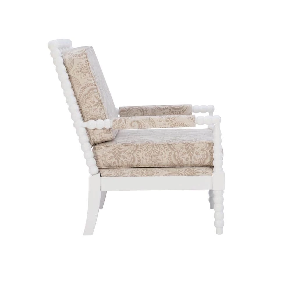 - Beige Paisley Upholstered Seat and Back