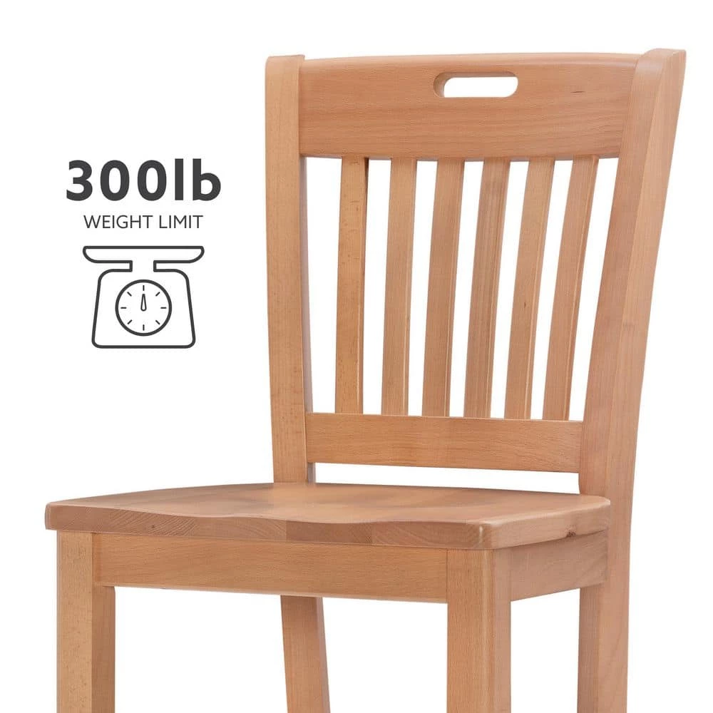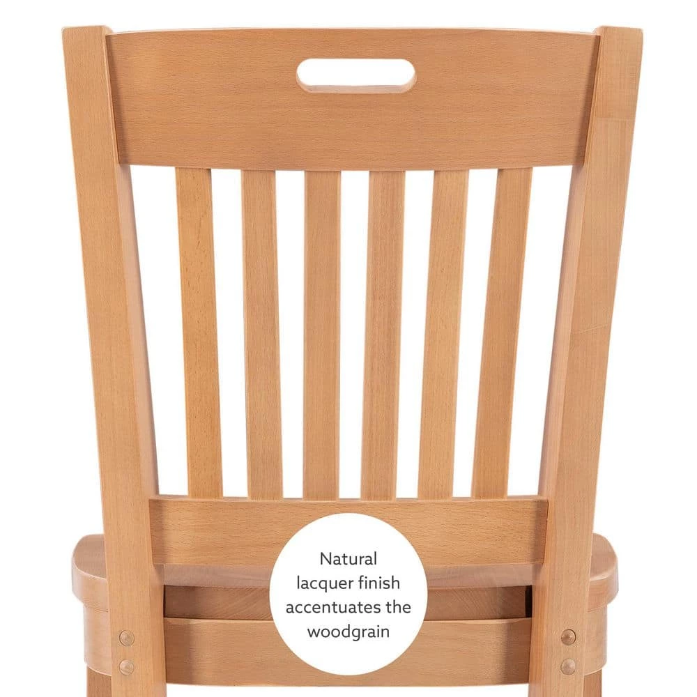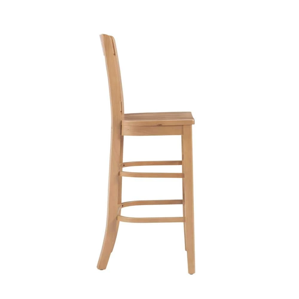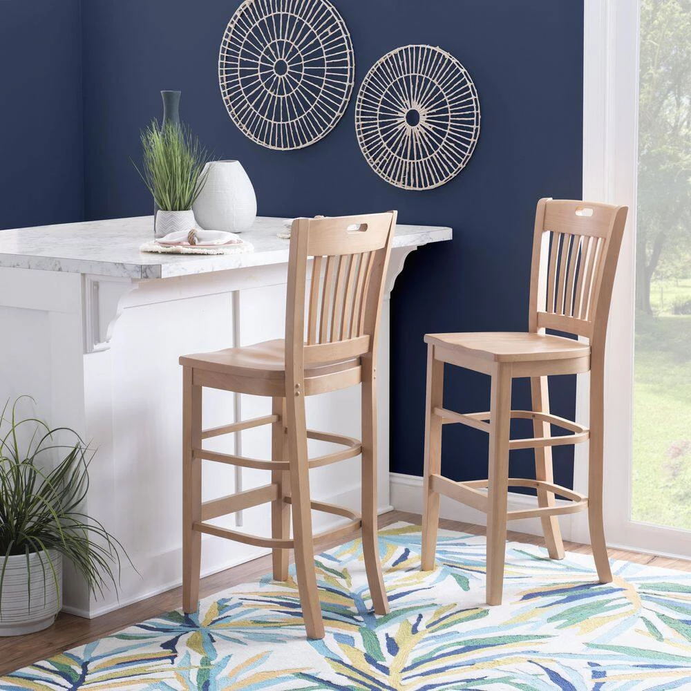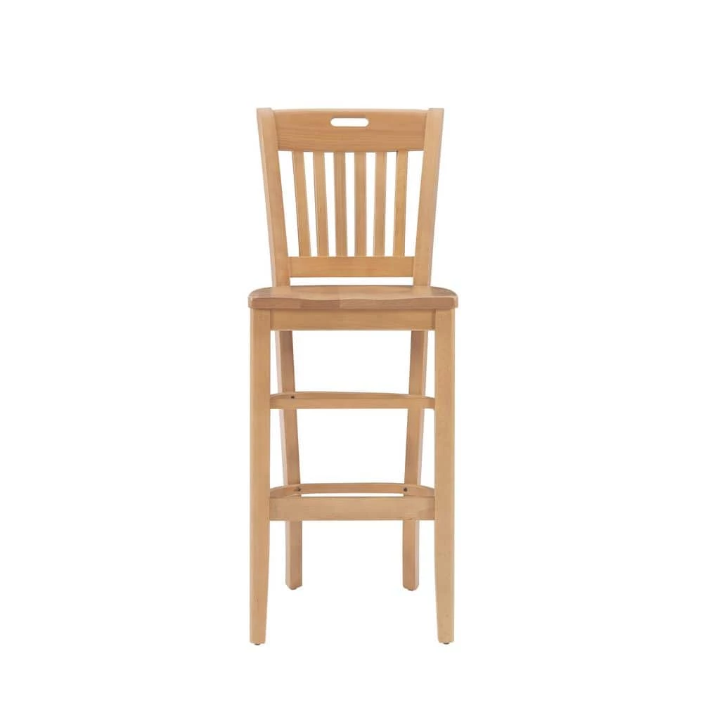 Sturdy and reliable, this Brouthers Natural Barstool with wood Seat (2 pk) will provide your home with rustic charm for years to come. The natural finish over the robust beechwood frame highlights knots and patterns in the woodgrain, lending to a modern farmhouse aesthetic. Adding to this classic look is a broad saddle seat and slatted backrest with a small cutout for ease of transport. A separate brass kickback is included, giving you the option to attach it to the footrest for extra protection and flair. This American made set of 2 arrives fully assembled and supports up to 300 lbs each seat. Commercial Grade