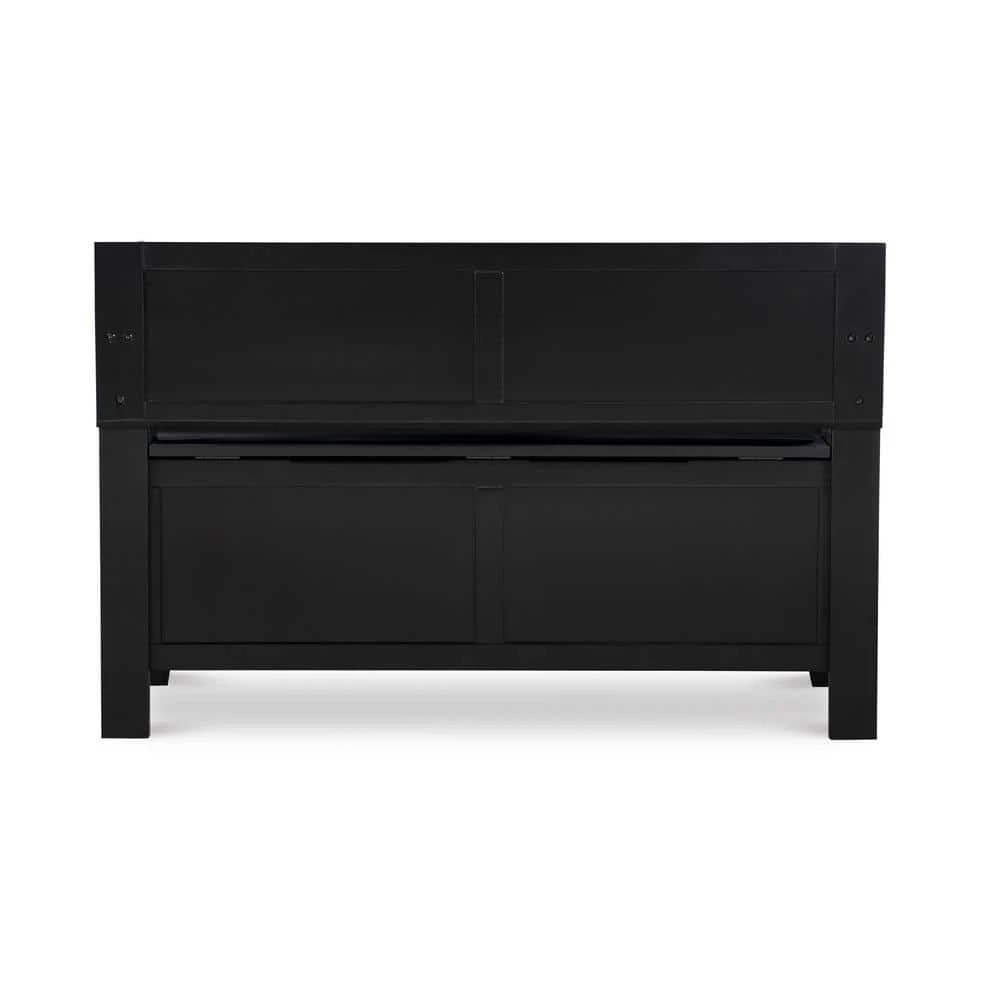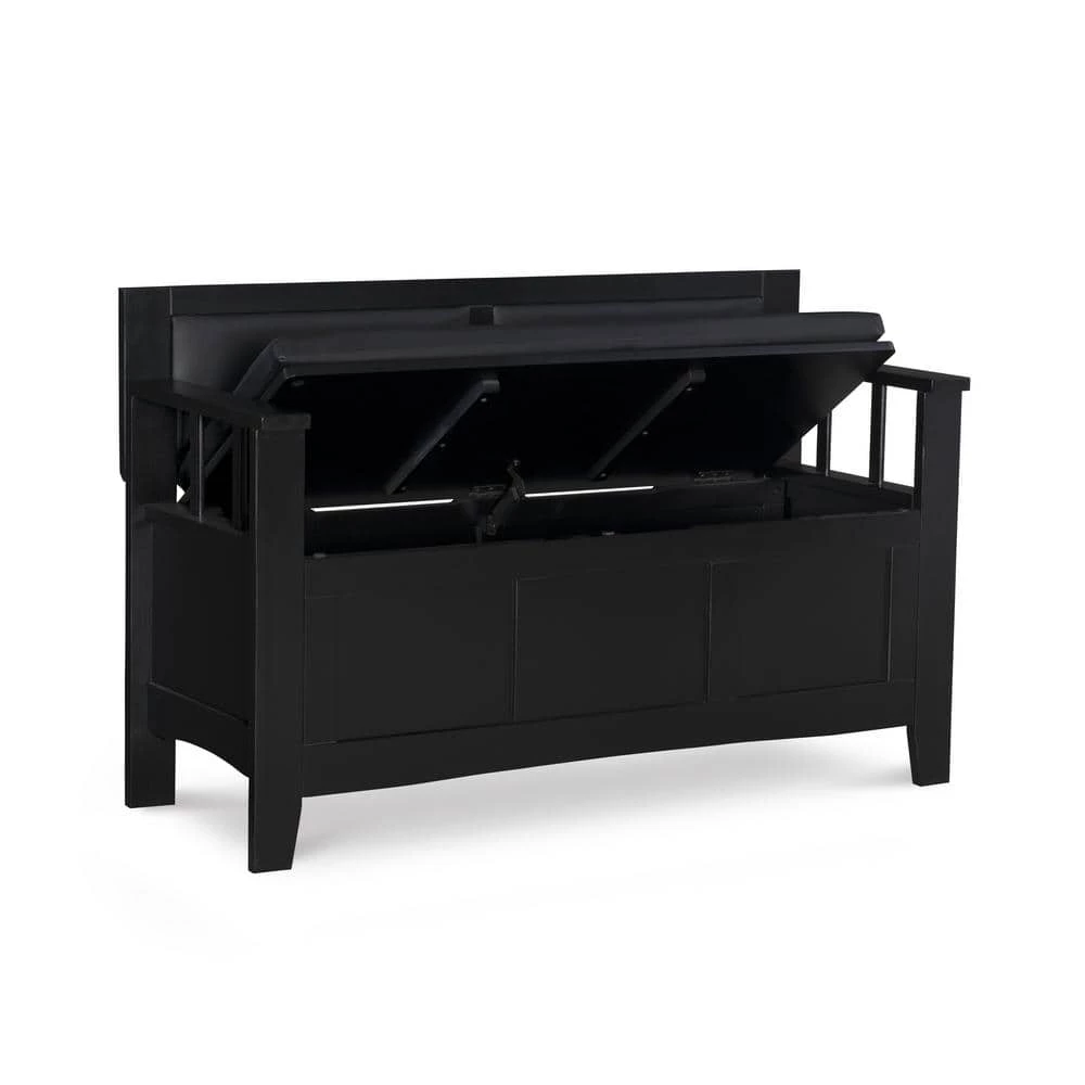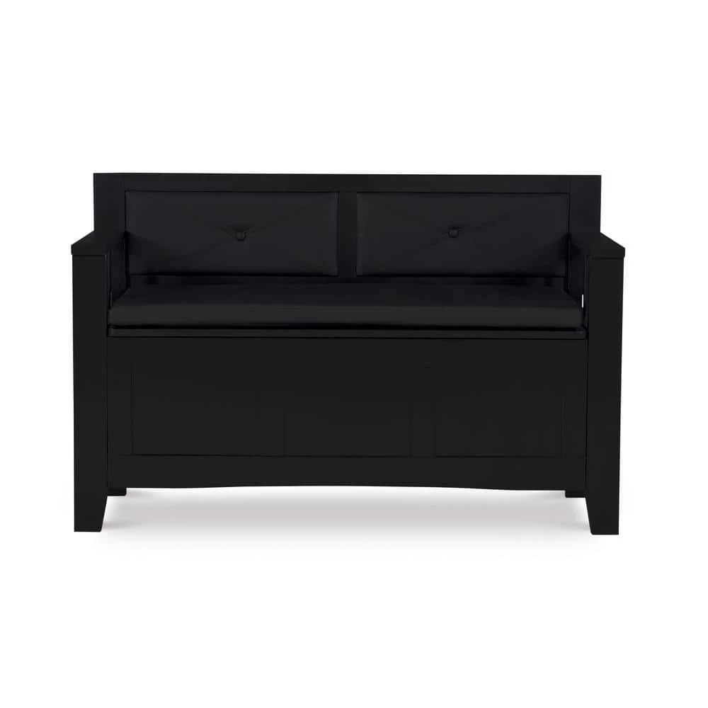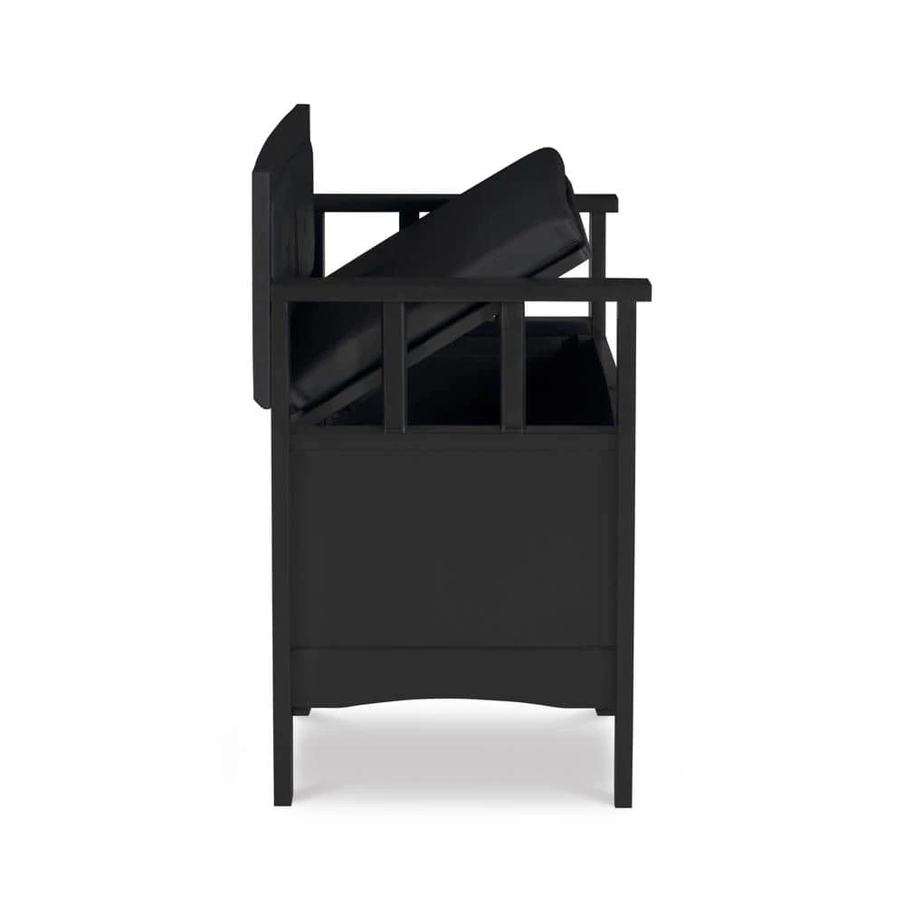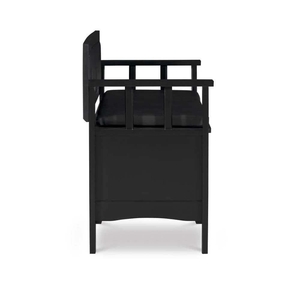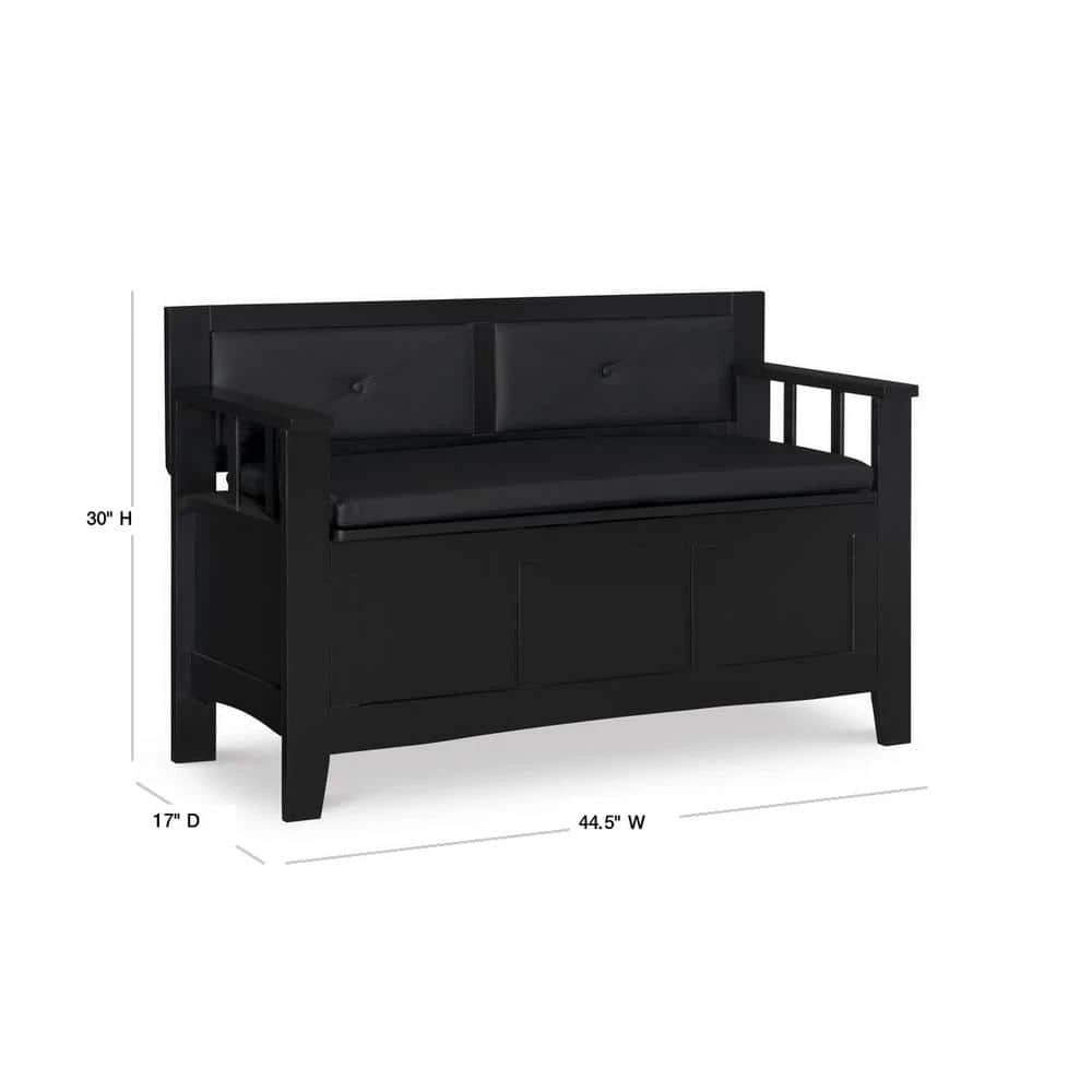 Create added seating and storage to your foyer or mudroom with this attractive and functional Lofton Padded Storage Bench. The bench features a flip top lid, allowing the user to easily retrieve articles from the storage compartment. The black vinyl padded back and seat adds comfort to the piece. A dark black finish allows this piece to easily complement your homes decor.