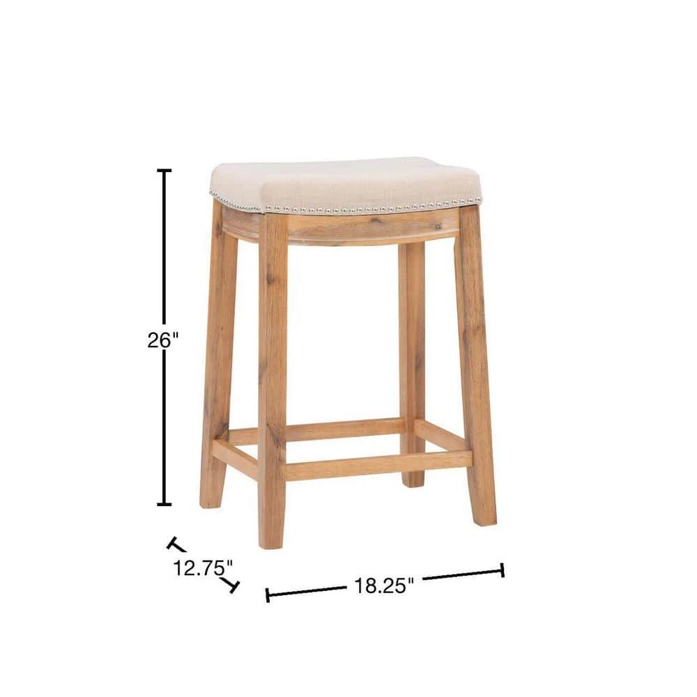 The Claridge Acacia Counter Stool will add stylish seating to any counter or high top table. The sturdy wood frame has a rustic acacia finish accented by a natural linen upholstered seat. Shiny silver nailhead trim makes for an eyecatching detail. 24″ Seat Height. 275 pound weight limit.
