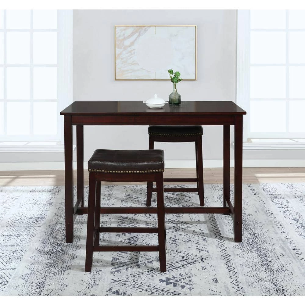 Our most popular counter height stools now have a coordinating pub table. Perfect for providing a gathering, dining or desking space to your den or living areas. Solid wood base and wood veneer top in a walnut brown finish. Be sure to match with stools that have a seat height of 24 to 28″ to provide enough leg room. Flexible and durable enough to be used in the dining room, living room or as extra kitchen counter space. Pair with the Claridge Linen Counter Stool for a perfect set.