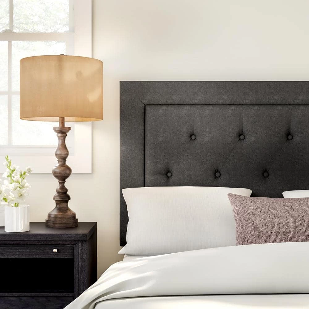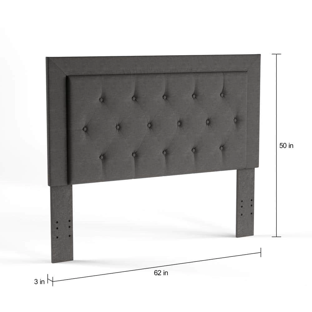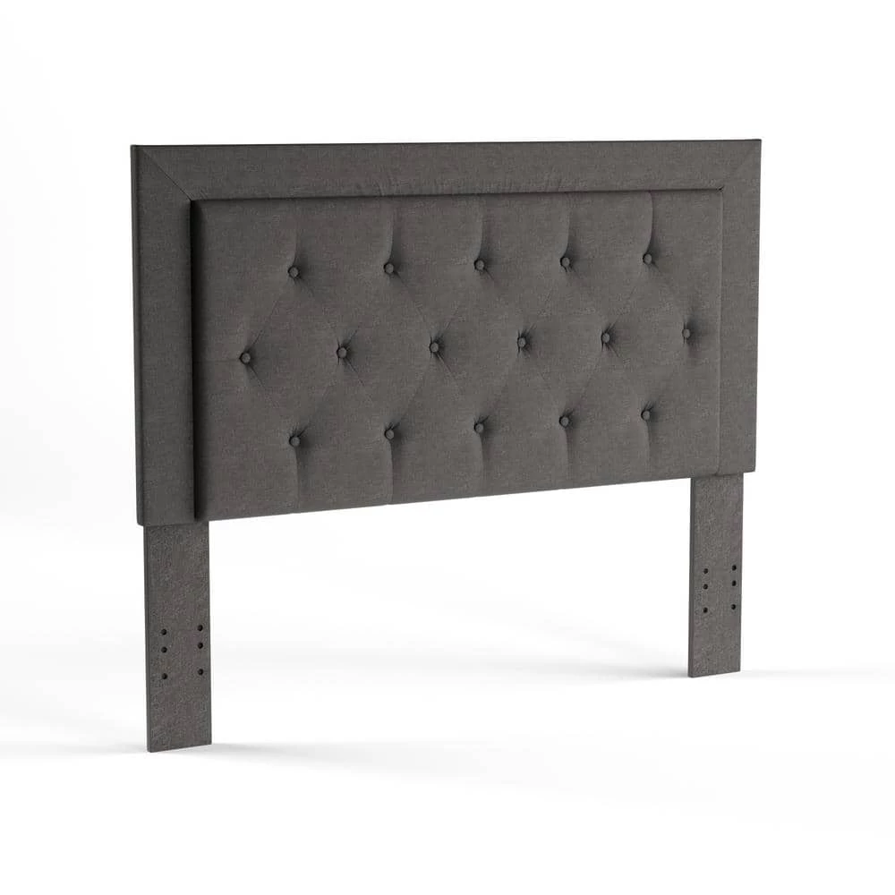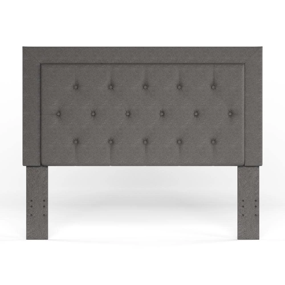 The Clayton Headboard has a simple, chic design that is perfect for any home decor style. The straight lined design is upholstered in charcoal linen and accented with button tufting. The full/queen headboard will bring drama and elegance to your bedroom.