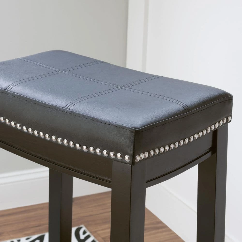- Silver nail head trim and double needle stitching on stools adds eye catching accent