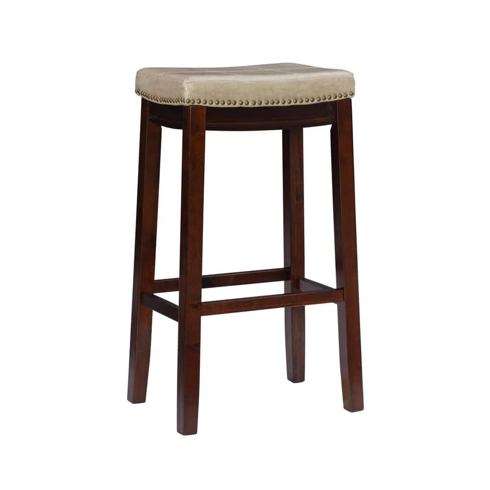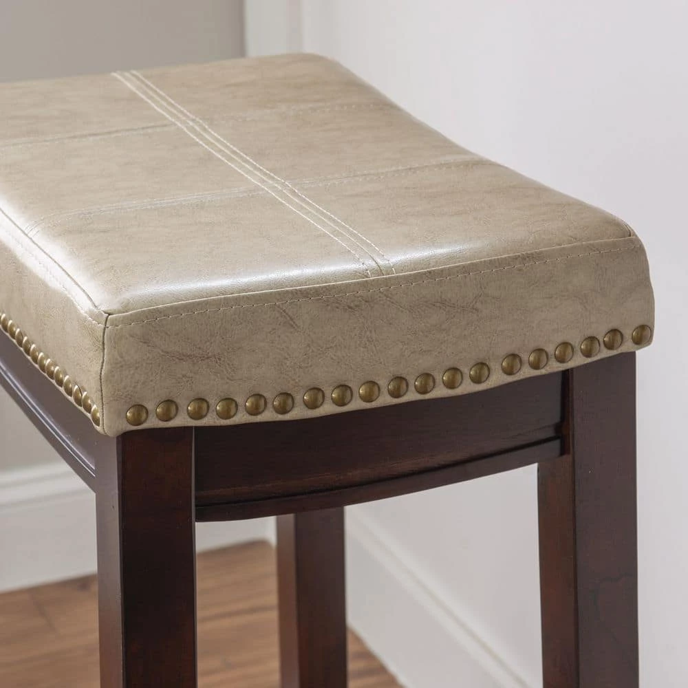 - Mottled beige faux leather upholstery offers undeniable style, comfort and easy cleaning