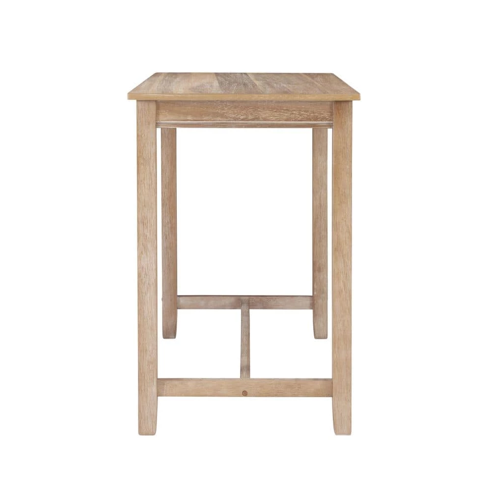Introduce this Concord Natural 3-pieces Counter Set to your kitchen, dining room, living room or home bar for an elevated gathering space guests will love. The wooden counter height table embodies rustic charm through a beautiful veneer and multistep distressed brown finish. The matching pair of stools are made of solid acacia wood and outfitted with a natural linen blend upholstery over cushions for easy cleaning and enhanced comfort. A gleaming silver nail head trim adds a subtle, yet defining accent that ties this versatile set together.
