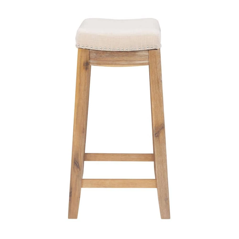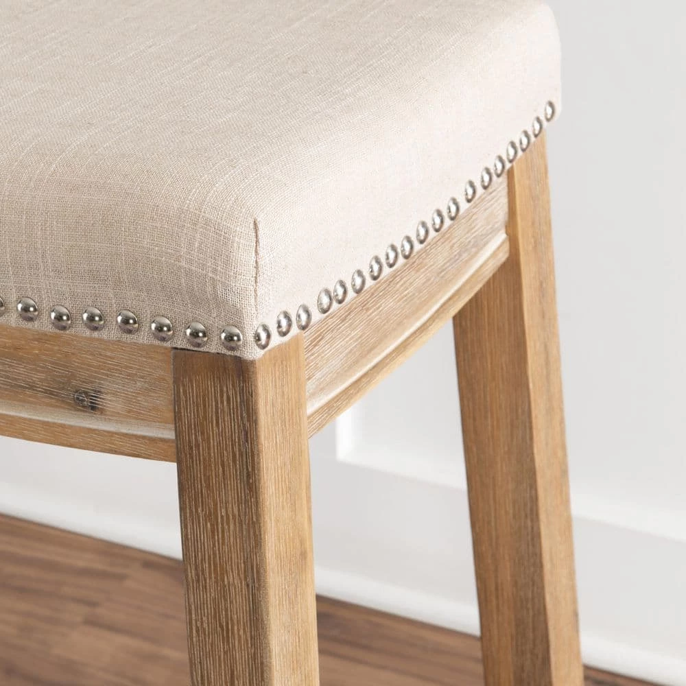 - Stools upholstered in natural colored linen blend