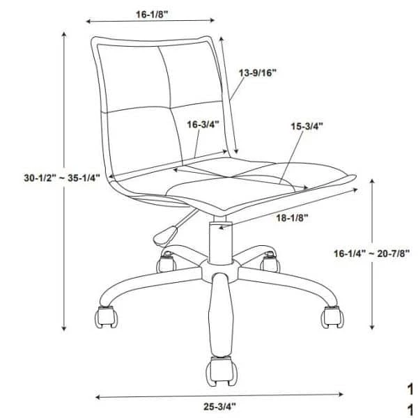 Add contemporary style to your home office with this Dax Blue Adjustable Office Chair. The sleek quilted seat is upholstered in a bright blue polyester fabric. The chrome silver metal base has black easy roll castors to make for easy movement throughout your office. The gas lift allows it to easily work with a variety of desk heights.