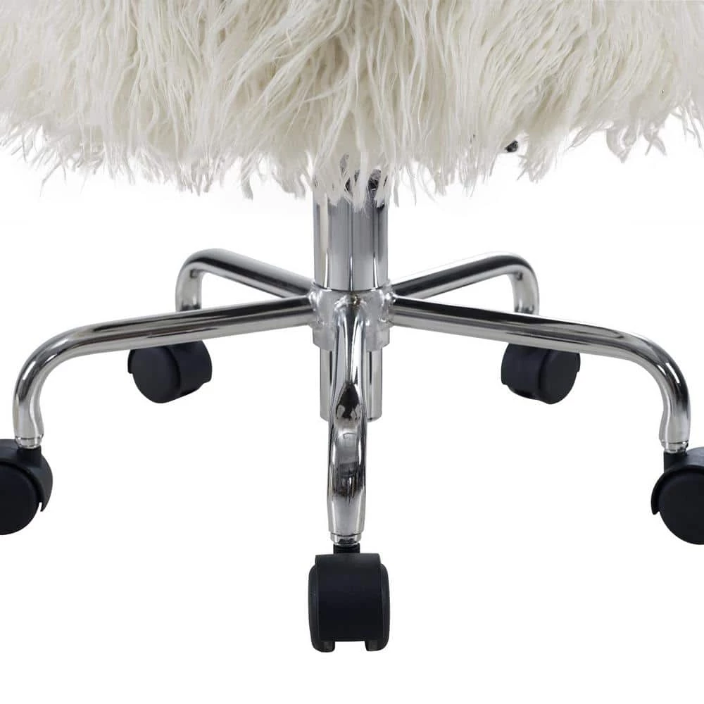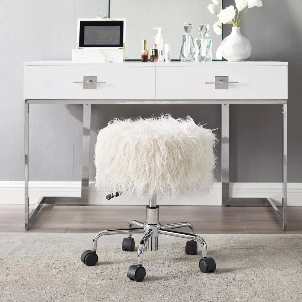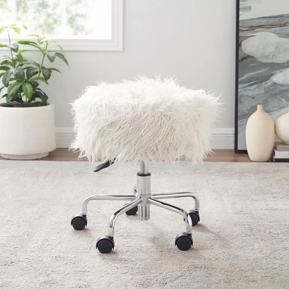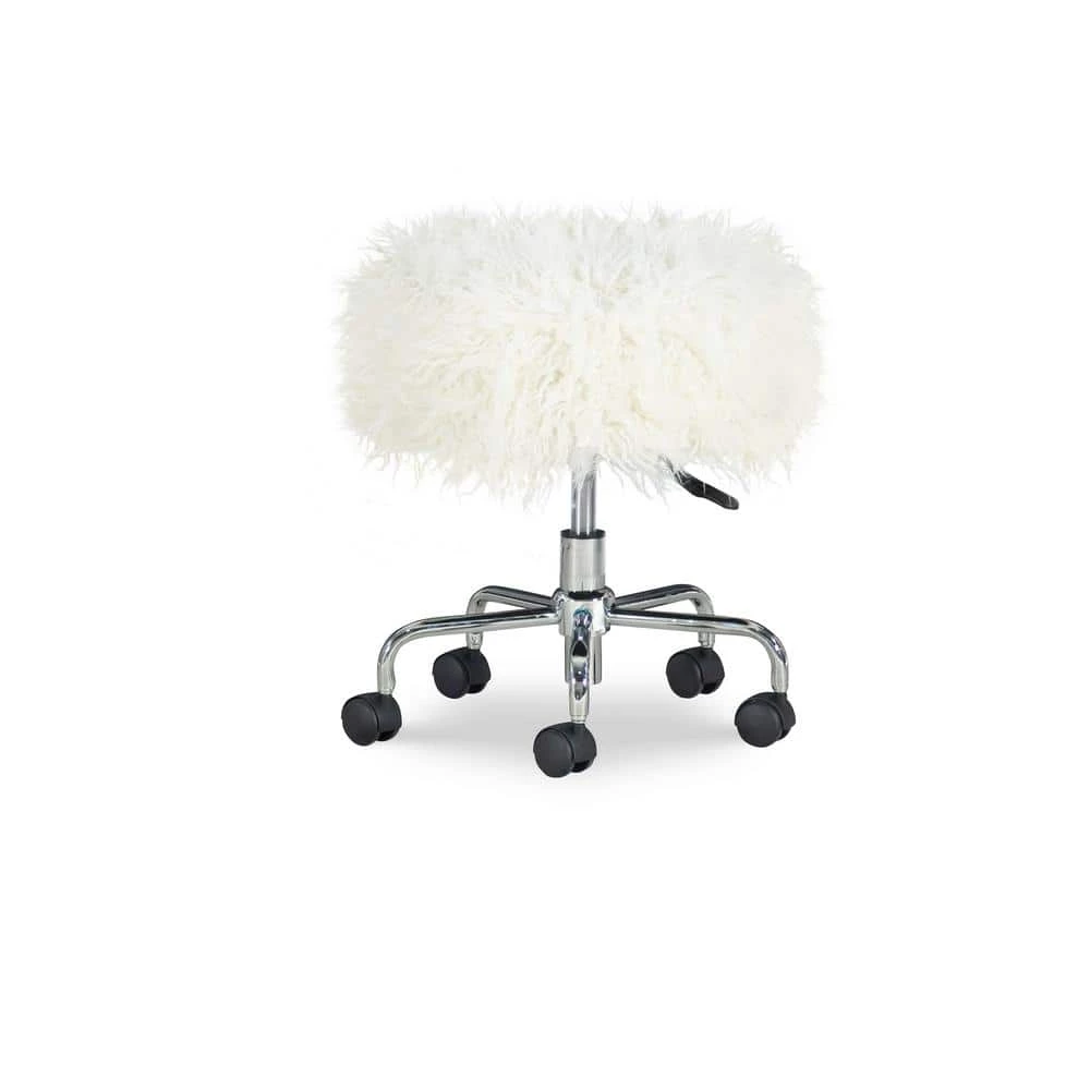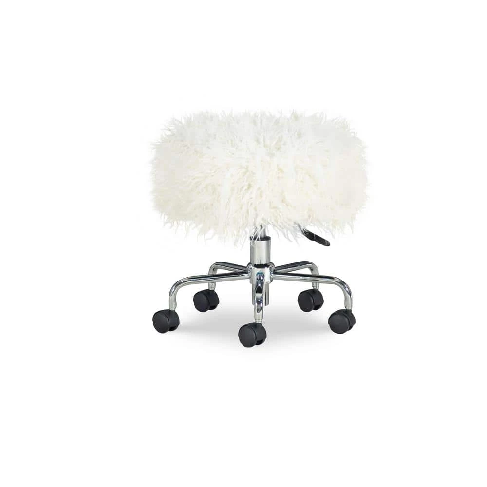 The Des 18.25 in. W hite Faux Fur Adjustable Height Rolling Stool will bring versatility and mobility to your workspace. Perfect for using at a desk, work table or craft space, the stool offers five easy roll castors and a 360° swivel. The plush adjustable seat is upholstered in a white faux fur fabric adding style to the piece.