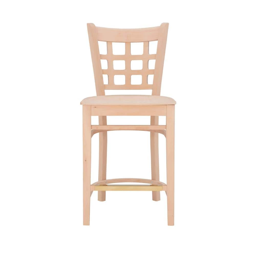 Holding to tradition, yet striking balance with modern temperament, this farmhouse Dixie Counter Stool Unfinished Plywood Seat is ideal for nearly any setting. A grid of open squares is framed by the curved backrest, inspired by lattice fencing of distant countrysides. Made of solid beechwood for strength and stability you can count on, the frame is left unfinished and ready for your personal touch. With a seat height of 24 in., the (set of 2) is an ideal match for counters 35 in. to 39 in. high and supports up to 300 lbs. each chair.