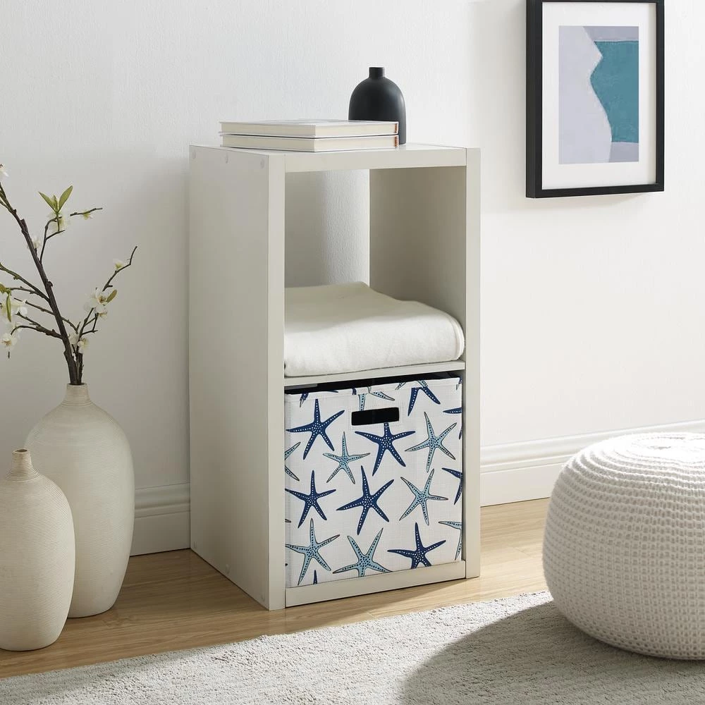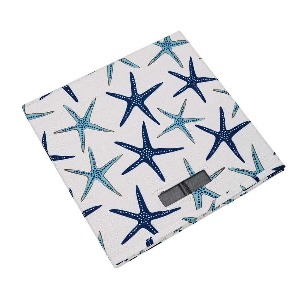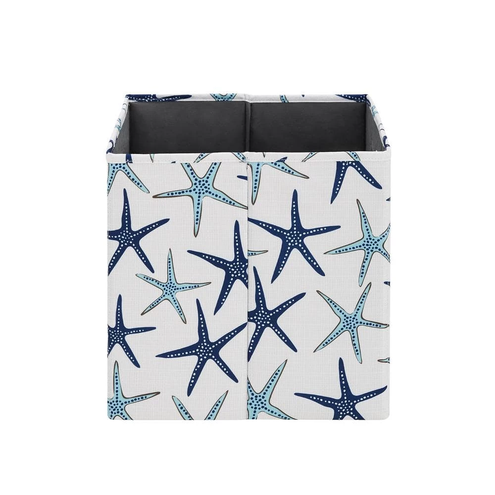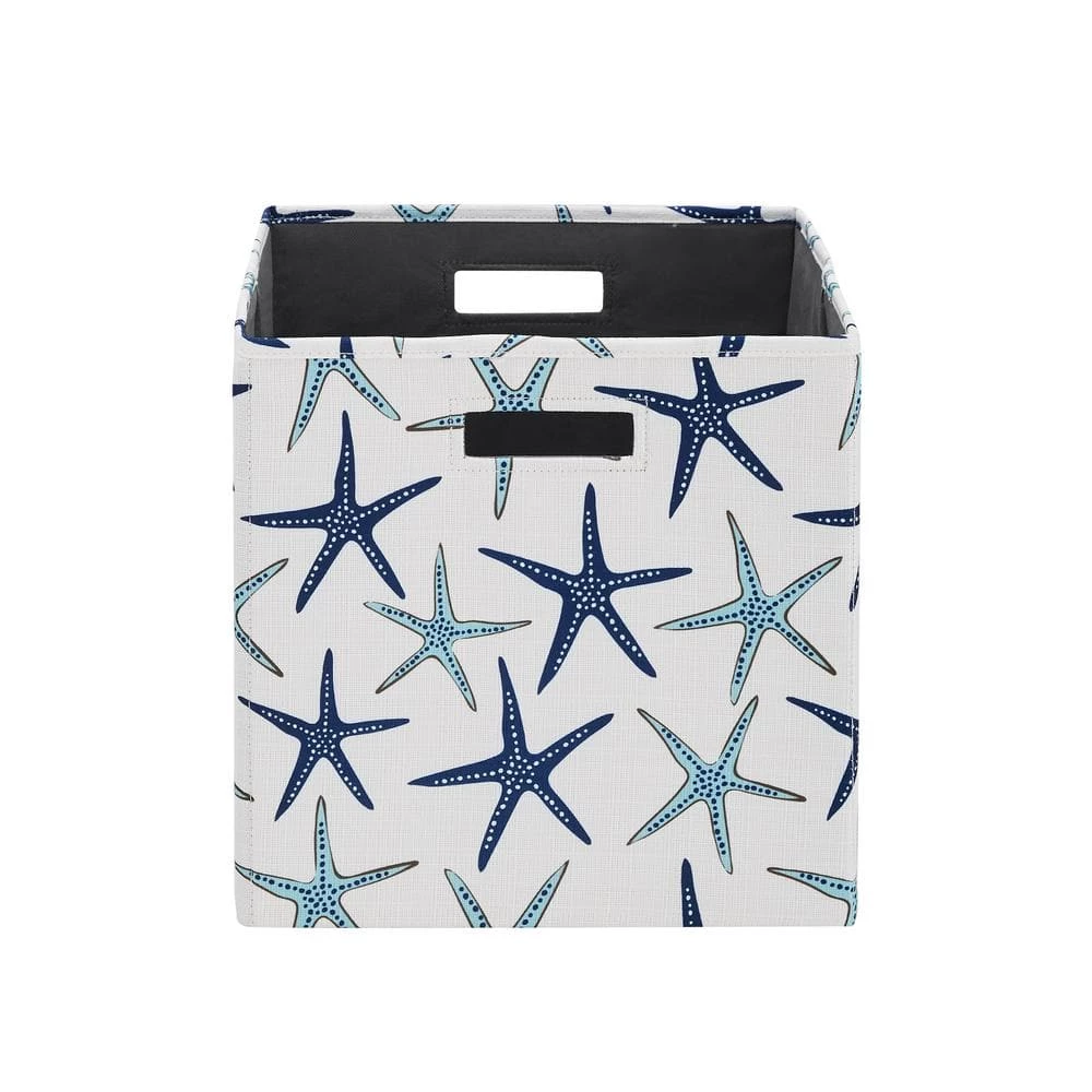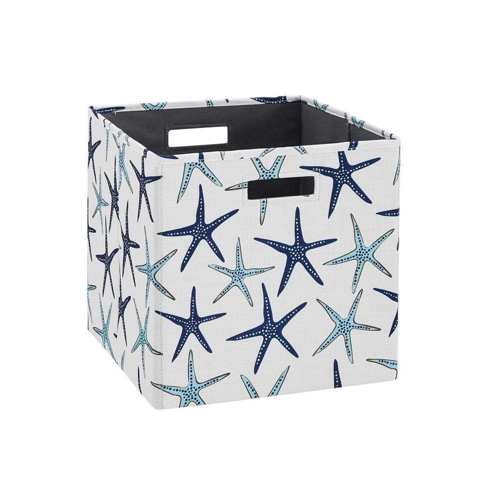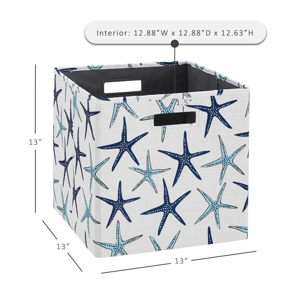 Add a fun touch of coastal flair to your decor with this Emma 13 in. Cube Collapsible Storage Bin Starfish (Set of 2). The splashy blue starfish print will brighten any room while providing sturdy storage. Handle cutouts on each end make it easy to grab the bin you need, and each folds down flat when you’re short on space. These versatile storage bins offer a stylish yet functional storage solution for toys, clothes, craft supplies and other small objects that are looking for a place to call home.