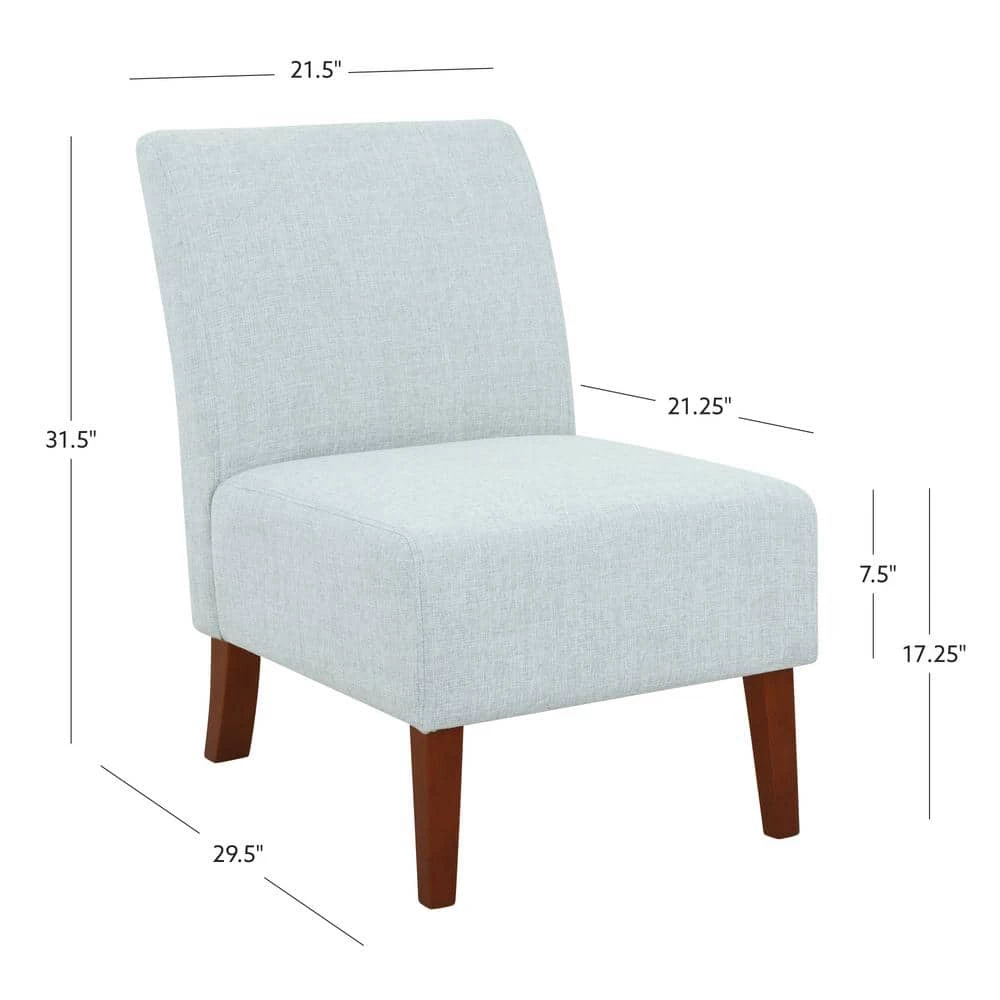 Sink into comfort with this Eucalyptus Grey Polyester Accent Chair with Padded Seat and Back. The timeless and multifunctional design makes it an ideal choice for your home. It especially looks great as a set of two in a living room or office. The chair has a plush seat and back that are upholstered in a durable fabric that mimics linen. The calming curve of the back leads to sturdy solid wood legs that are finished in a dark walnut. It holds up to 275 pounds and requires minimal assembly. Look no further for a perfect mix of style and function for your home.