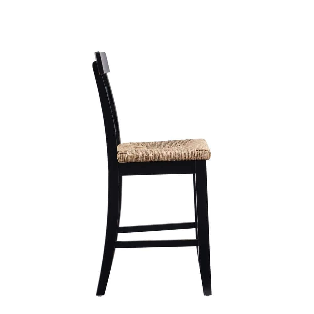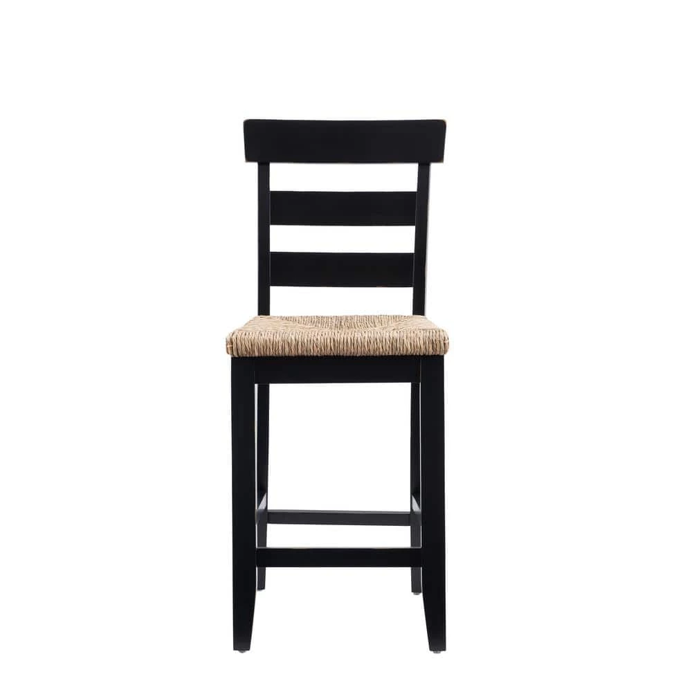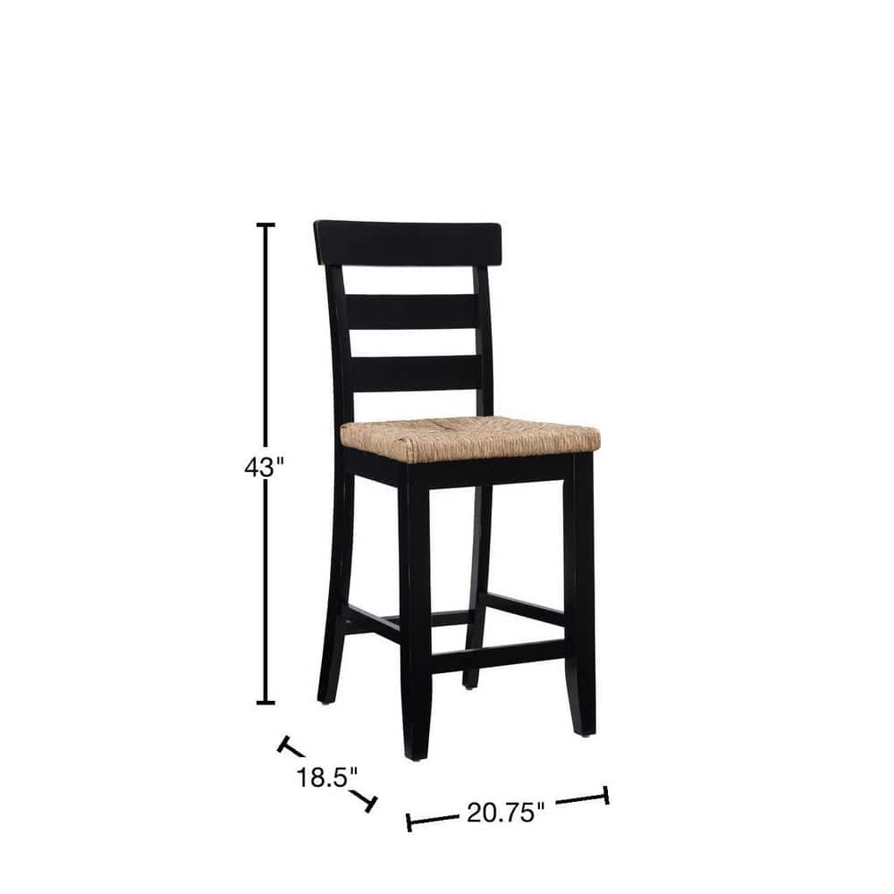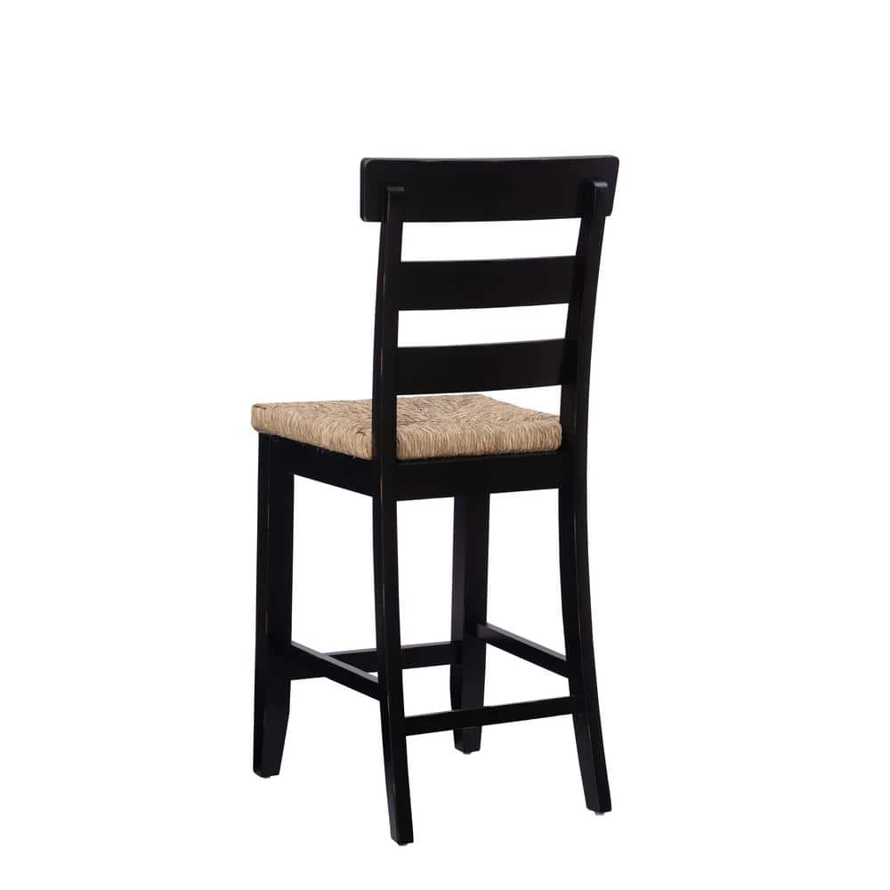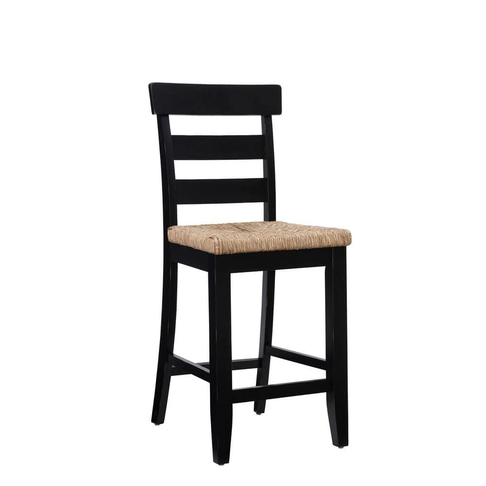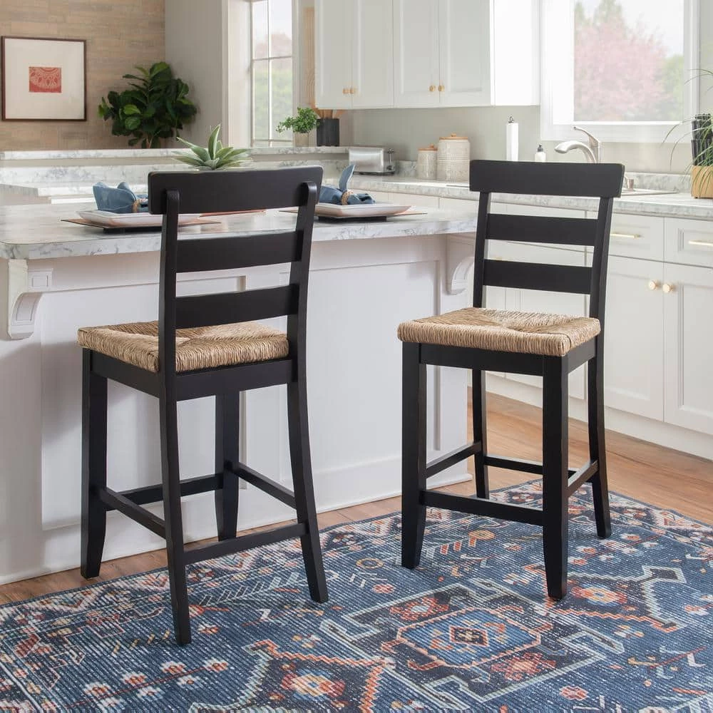 In classic farmhouse design, this charming Fernley Black Rush seat Counter stool is a seamless fit in traditional settings and among more contemporary decor. Constructed of solid rubberwood for ensured strength and stability, the wood chair frame is painted black, sanded and coated with a clear lacquer for extra durability and shine. The ladderback and handwoven rush seating hark back to old countryside taverns. With a seat height of 26.25 in., this piece is perfect for 35 in. to 39 in. High countertops.
