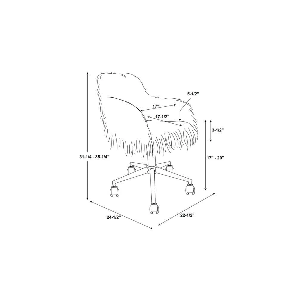 The Fran Office Chair adds a touch of fun and style to any workspace. This chair features a unique faux fur that is upholstered to the seat and back. Completed with a chrome base and rolling castors that allow for easy movement around your workspace. The adjustable lift seat allows the chair to work with a variety of table heights.