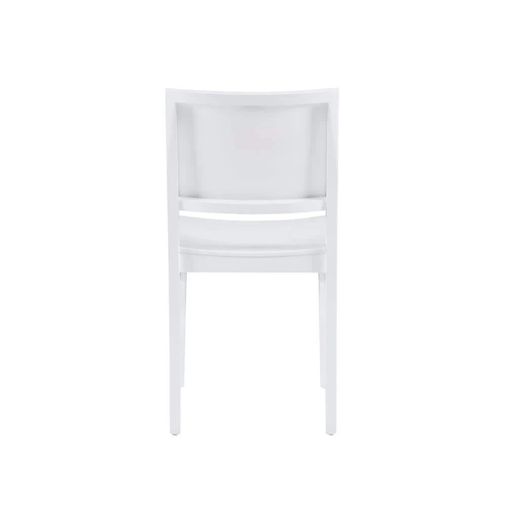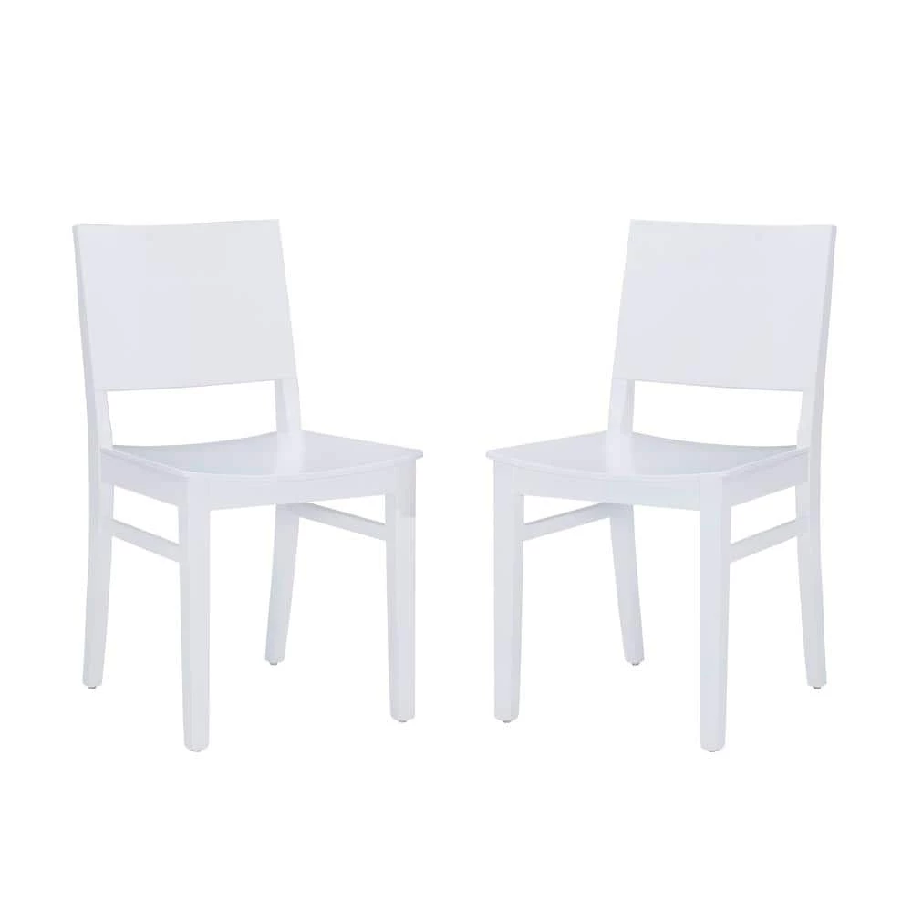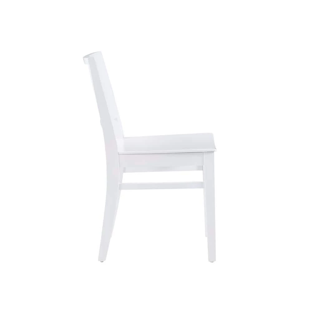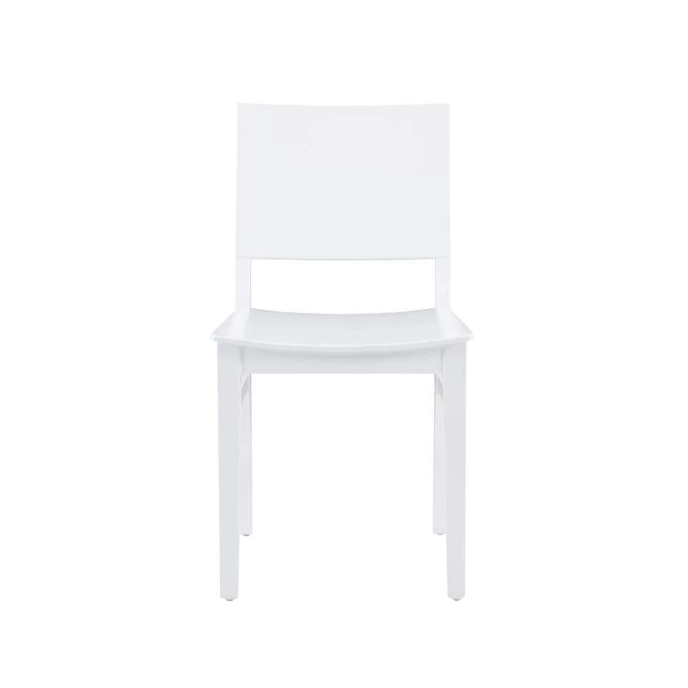 Smooth and to the point, this Harpe White Chair (Set of 2) emphasizes the minimalist approach of midcentury design with its clean lines and modest silhouette. The beechwood frame is painted white, sealed and sanded down before receiving a lacquer finish for a glossy shine that withstands liquid and everyday wear and tear. With a seat height of 19″, this set of two perfectly matches tables 28″ to 30″ high and supports up to 300 lbs each chair.