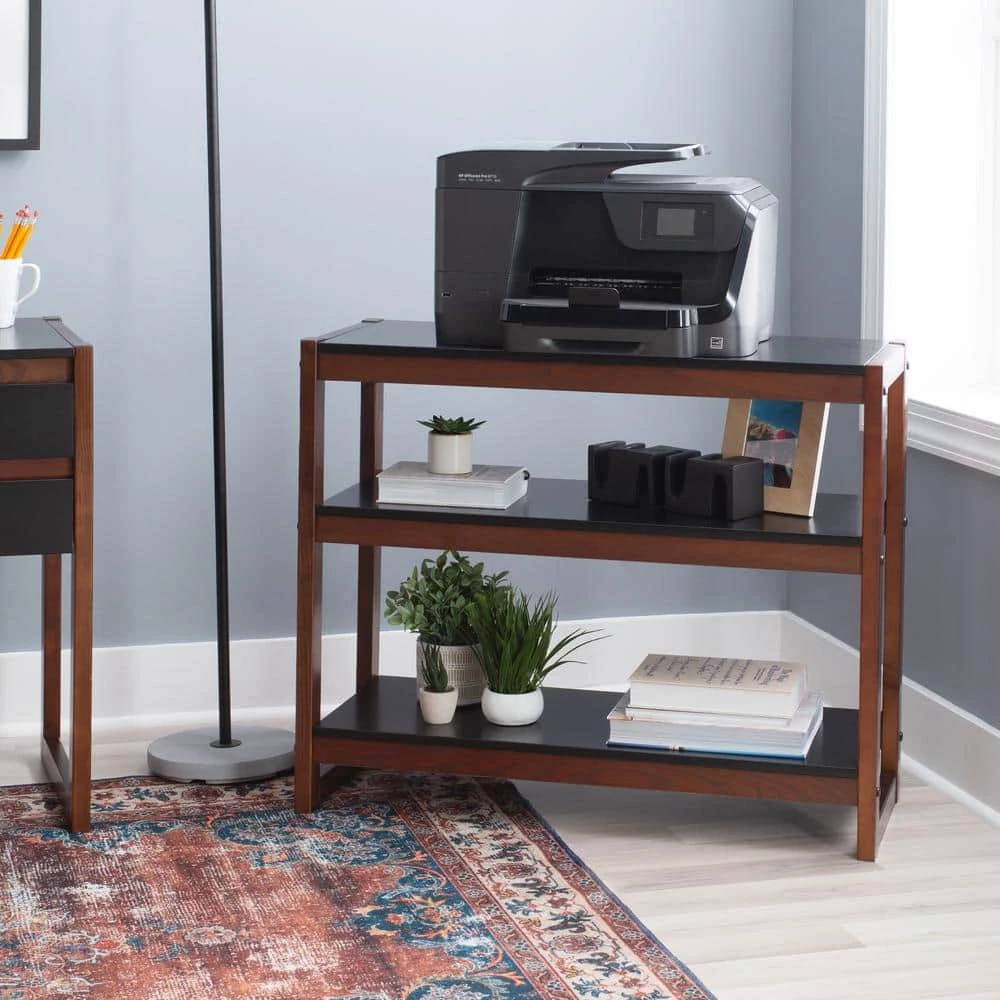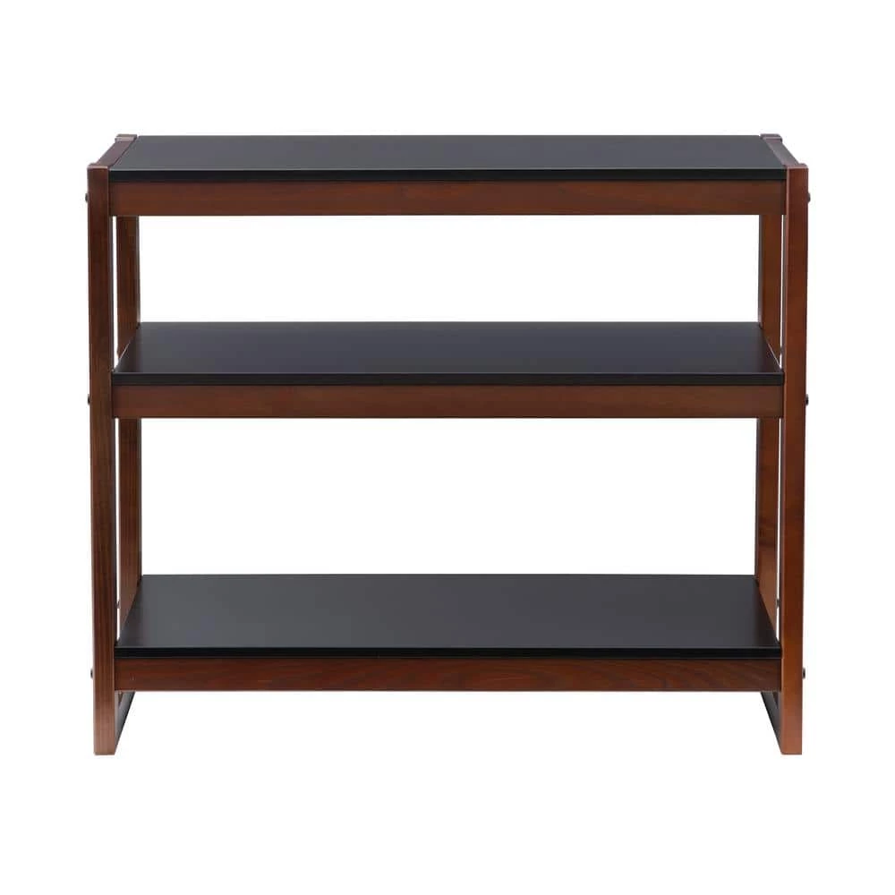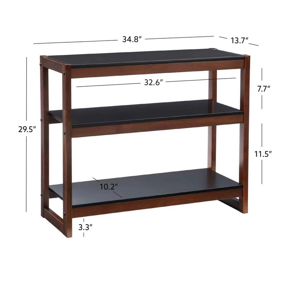 Sturdy and stylish, this Henry 29.5 in. Black and Walnut Wood 3 Shelf Low Bookcase is a charming room addition. It comes in an authentic pine construction and two versions, each offering contrasting finishes. The bookcase delivers value by combining function and simple design that fits nicely with today’s popular home fashion trends. Place it almost anywhere in the household. The bookcase helps organize a home office, craft room or any space where books, storage bins, gaming accessories, craft supplies, gaming equipment or other small items need stashing away.