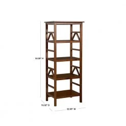 54.06 in. Antique Tobacco Wood 4-shelf Etagere Bookcase with Open Back by Linon Home Decor