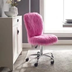 Bennet Pink Faux Fur Armless Adjustable Office Chair with Castors by Linon Home Decor