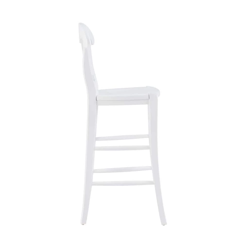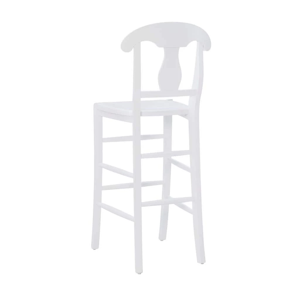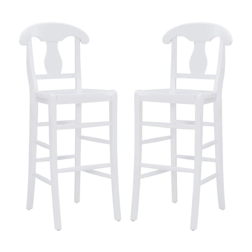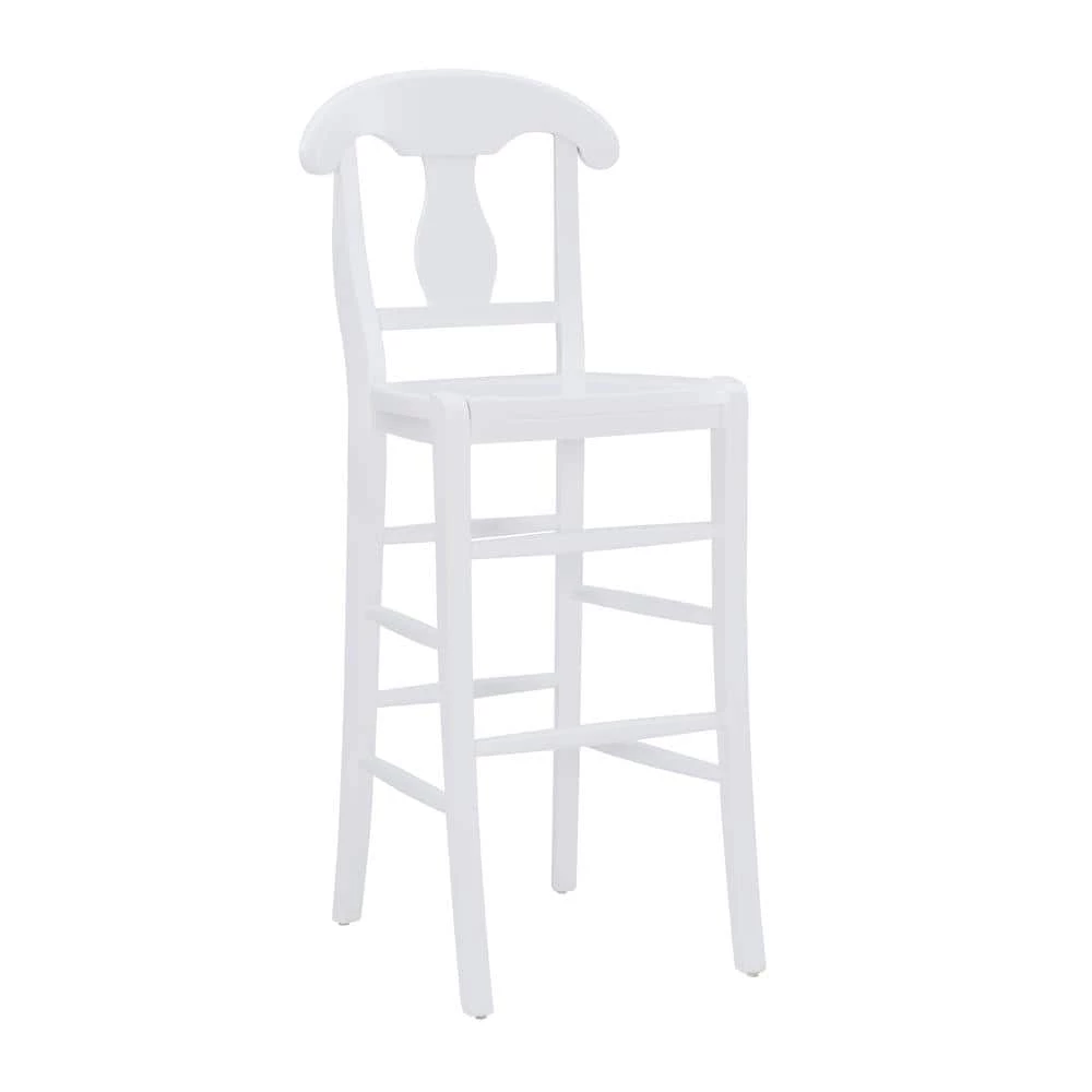 Embodying the charm and refinement of an old French cottage, this time honored Honus White Barstool w/ wood seat (Set of 2) makes for a defining piece in a variety of traditional settings. The sturdy beechwood frame is adorned with soft curves and an ornate splat back design to form an eye catching silhouette. The surface is painted white and coated in a glossy lacquer finish for long lasting shine and protection. The set of 2 arrives fully assembled, ready to elevate your farmhouse kitchen or home bar.