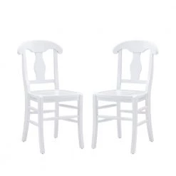 Embodying the charm and elegance of the French countryside, this time honored Honus White Chair w/ wood seat (Set of 2) makes for a defining piece in a variety of traditional and contemporary settings. The sturdy beechwood frame is adorned with soft curves and an ornate splat back design to form an eye catching silhouette. The surface is painted white and coated in a lacquer finish for long lasting shine and protection. The set of 2 arrives fully assembled and supports up to 300 lbs.