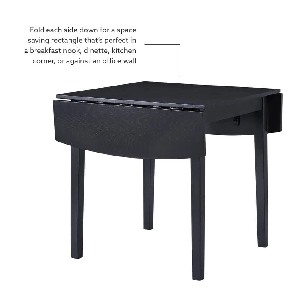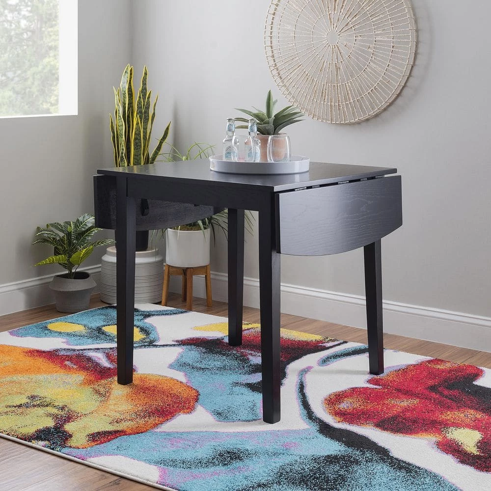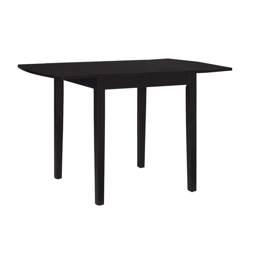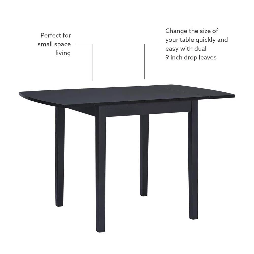 Enjoy a delicious homemade dinner with family and friends over this contemporary Hubbard Black Square Dropleaf Table. Sleek and refined, the versatile 48 in. drop leaf design fits both large or small rooms. Fold each side down for a space saving rectangle that’s perfect in a breakfast nook, dinette, kitchen corner or against an office wall. Expertly crafted from solid rubberwood to ensure years of use, it features a stunning black finish that coordinates with both casual and sophisticated styles. From country farmhouse to urban loft, this piece will enhance any home’s decor.