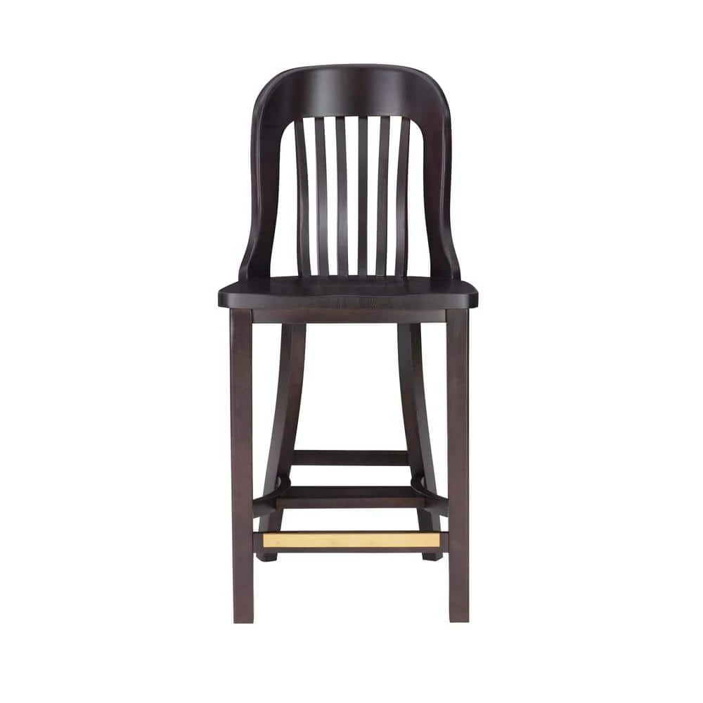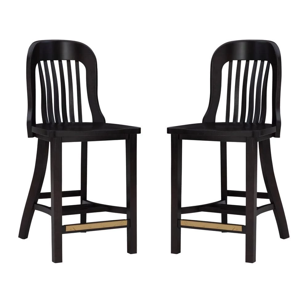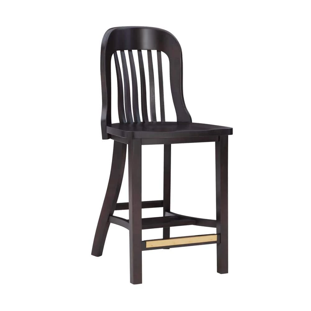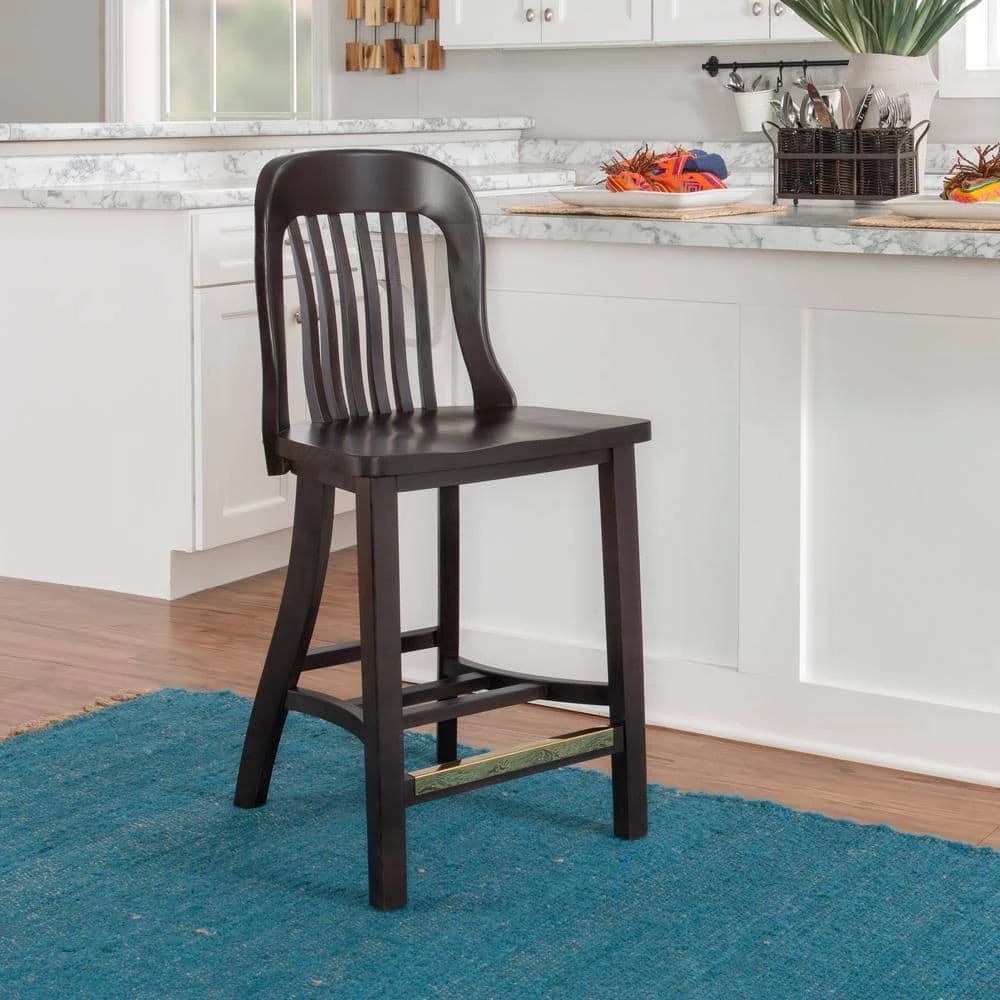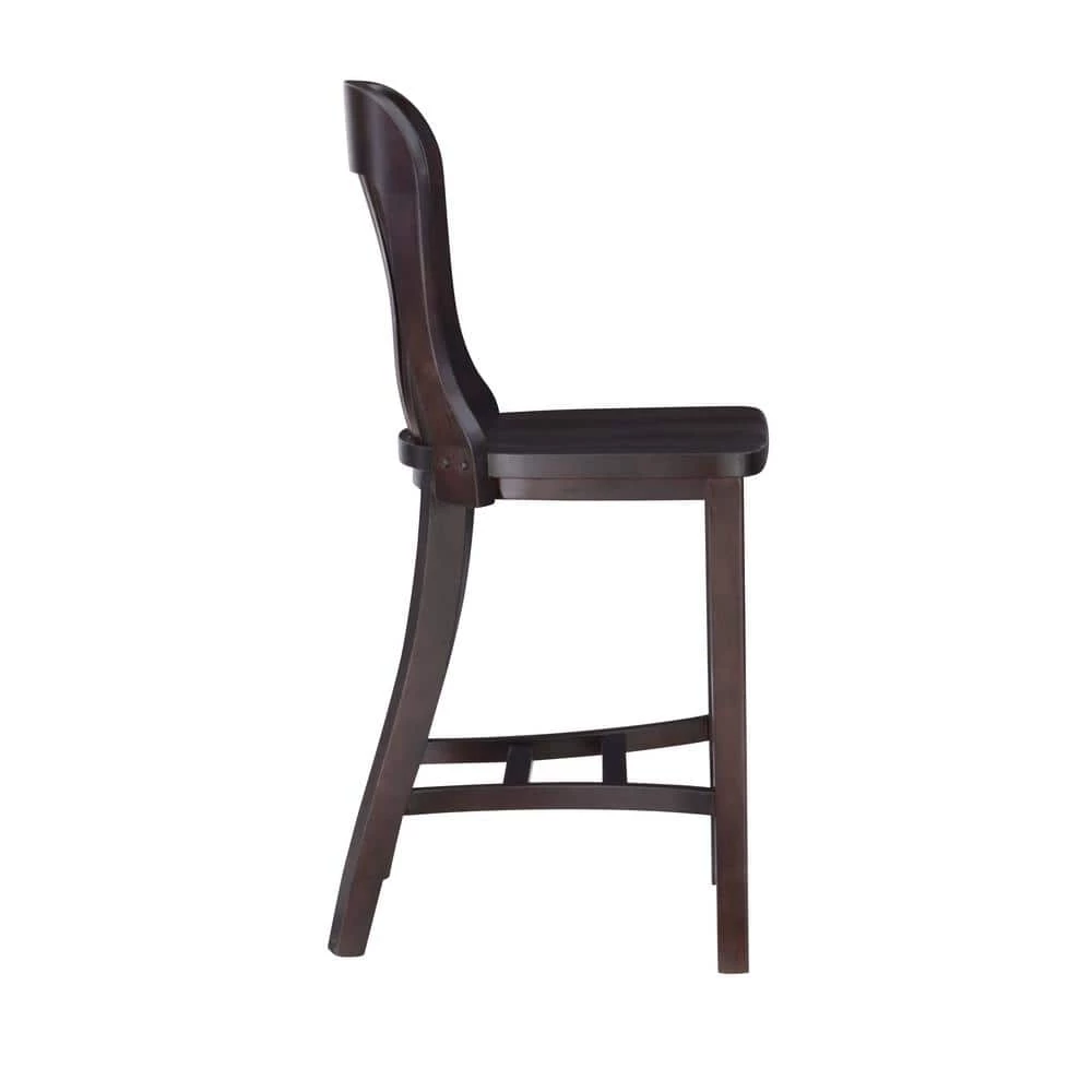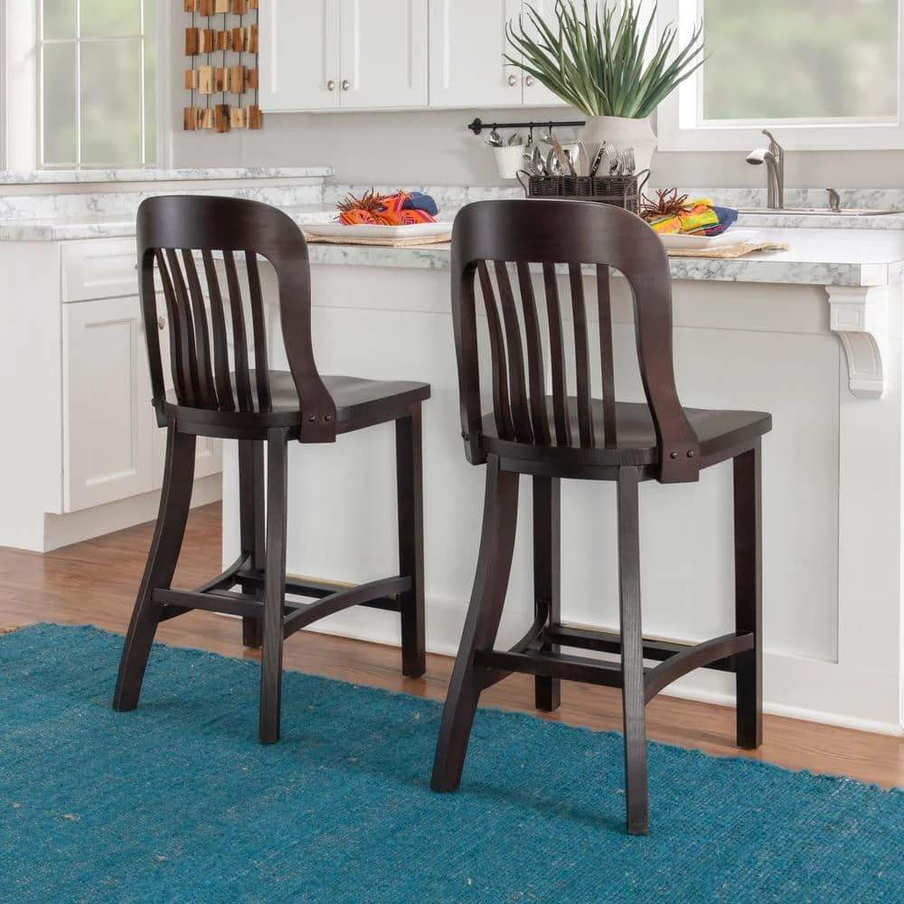 Subtle twists and turns in the silhouette of this Hynes 40 in. Brown Slat Back Solid Wood 24.5 in. H Seat Counter Stool with Wood Seat (Set of 2) make for an intriguing mix of modern and traditional aesthetics that is sure to pique the interest of family and guests alike. Constructed of solid beechwood for ensured strength and stability, the frame is then stained dark brown, sealed, sanded and coated in a lacquer finish for extra protection and a glossy shine. Adding to the contrast is a wide saddle seat countered by a narrow slat back design and inward curving support rungs that connect the legs. The set of two arrives fully assembled and supports up to 300 lbs. each stool.