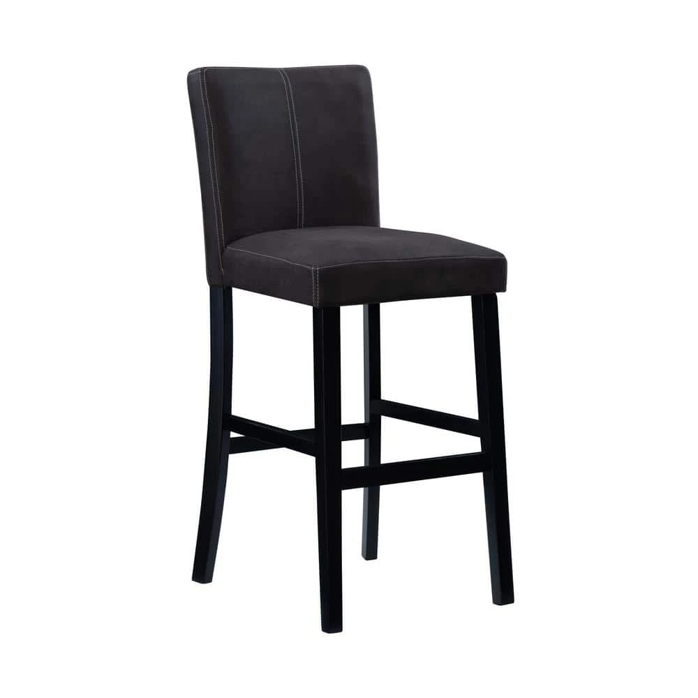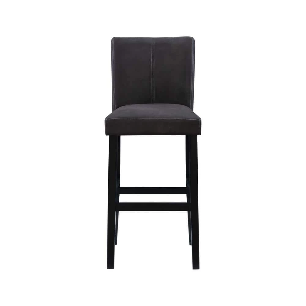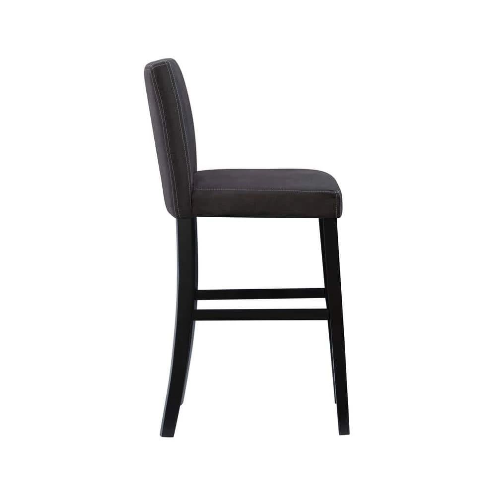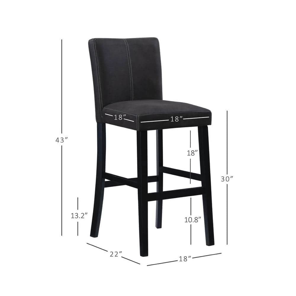Elevate your space with this Iola 30″ Charcoal Microfiber Upholstery Back and Seat Barstool simple profile. It’s perfect for serving drinks and snacks at a bar or pub table, as well as for extra seating in any room. This stool works best with bars or pub tables 41″ to 43″ H. Black finished legs and foot rails define the sturdy solid wood frame. The dark charcoal gray microfiber upholstery feels and looks like real suede but is so easy to clean. Features include double needle accent stitching down the center and a comfortable padded seat. Purchase several to complete a timeless look in any decor.