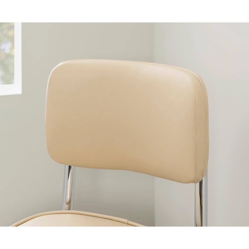 - Beige faux leather upholstery contrasts beautifully with chrome brushed frame