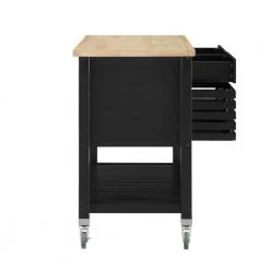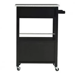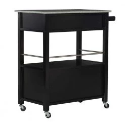 Caitlin Black Kitchen Cart with Granite Top, Towel Bar, and Storage by Linon Home Decor