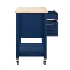 Lauretta Denim Kitchen Cart with Wood Butcher Block Top by Linon Home Decor