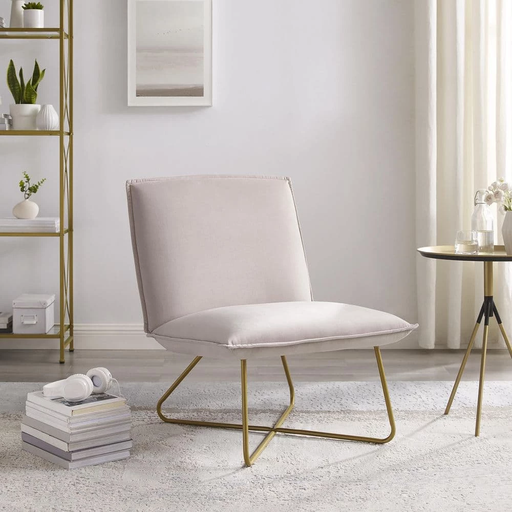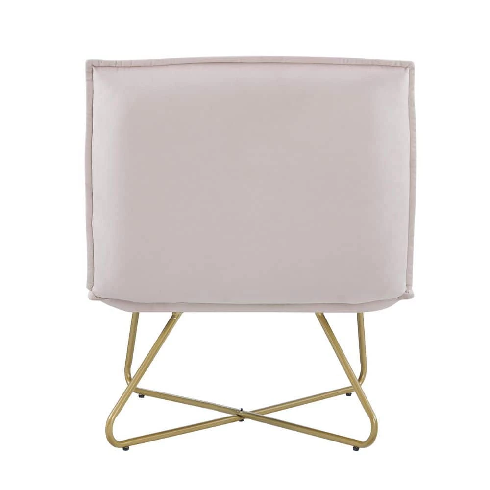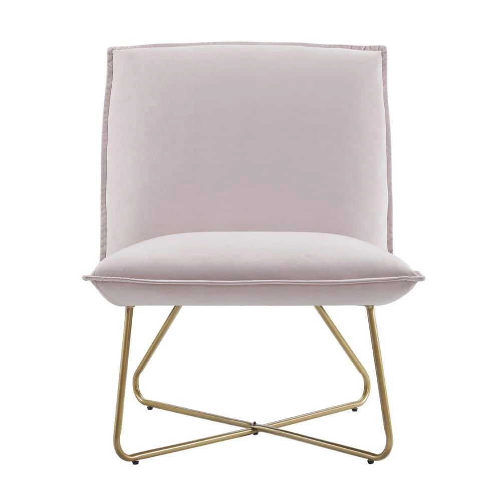 Casual comfort with sophisticated styling with just the right amount of pillow softness floating on a sturdy metal wire base on this LauraLee Blush Pink Accent Chair. Trimmed with French seams, the soft pink velvet is plush and comfy. Metal legs in gold at a bit of sophistication. Great in any youth, teen or adult bedroom, family room, or dorm room. Destined to become your favorite chair to curl up with a good book.