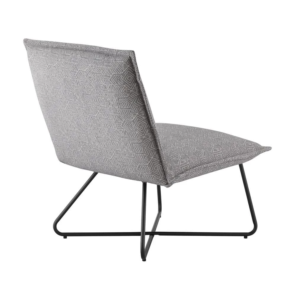 Casual comfort with sophisticated styling on the LauraLee Grey and Black Metal Modern Accent Chair. Just the right amount of pillow softness floating on a sturdy metal wire base. Fabric features a contemporary geometric pattern in grey. Legs are in powder coated in black with floor protecting pads. Great in any youth or adult bedroom, in a family room or wherever. Destined to become your favorite chair to curl up with a good book.