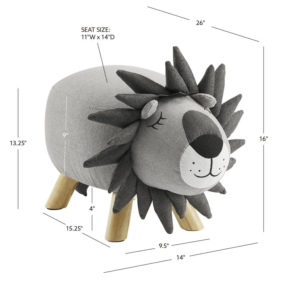 Bring a sense of adventure into your children’s room with this whimsical Leo the Lion Stool. Friendly, cute and comfortable, this exciting accent piece will serve as a springboard for the imagination of your little ones. Use it as a seat, foot stool, a prop in a play or as a platform for arts and crafts. Sturdy rubberwood legs support a foam padded cushion wrapped in 100% polyester fabric for a soft touch and easy cleaning. A 13.25 in. seat height provides a safe and accessible perch that the whole family will love.