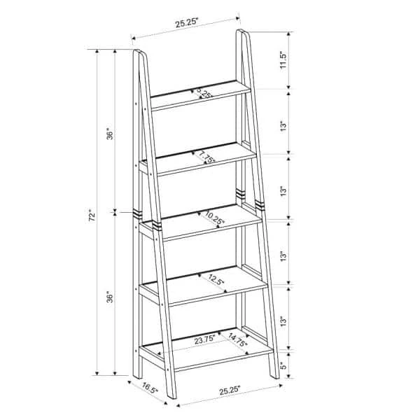 - 5-shelves make up this ladder bookcase