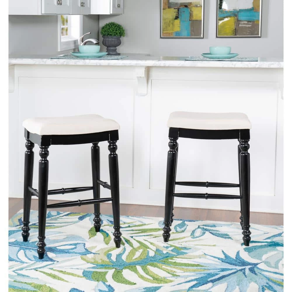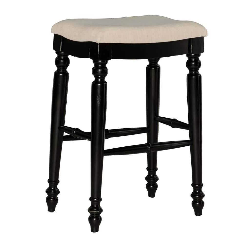Unique and stylish, the Marino Black Backless Bar Stool will add eyecatching design to your kitchen bar or high top table. The backless stool features elegant turned legs and a plush curved seat. The neutral padded seat easily complements the dark black finish. Bar Height.