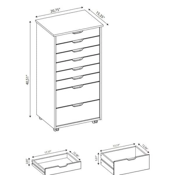 - Interior of drawers: small 17.17″ w x 12.36″ d x 2.05″ d ; large 17.17″ w x 12.36″ d x 5.31″ d
