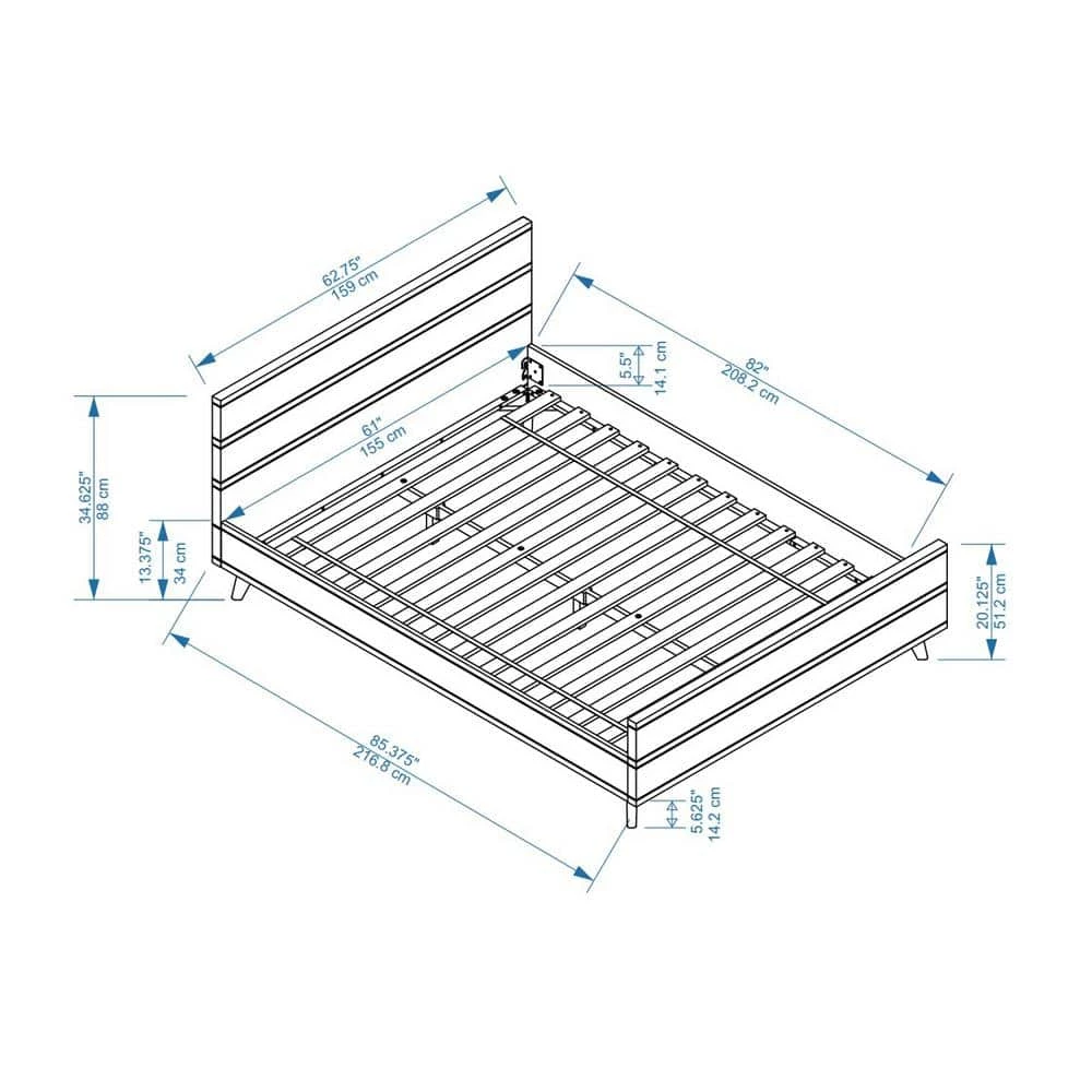 - Headboard: 62.75 in. W x 1.5 in. D x 34.75 in. H, footboard: 62.75 in. W x 1.5 in. D x 20.25 in. H, side rails: 82 in. W x 8 in. D x 1.75 in. H