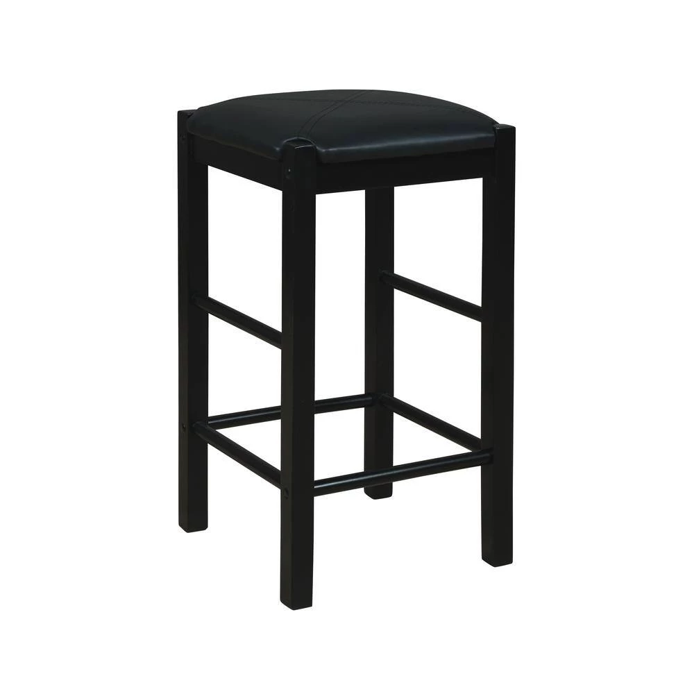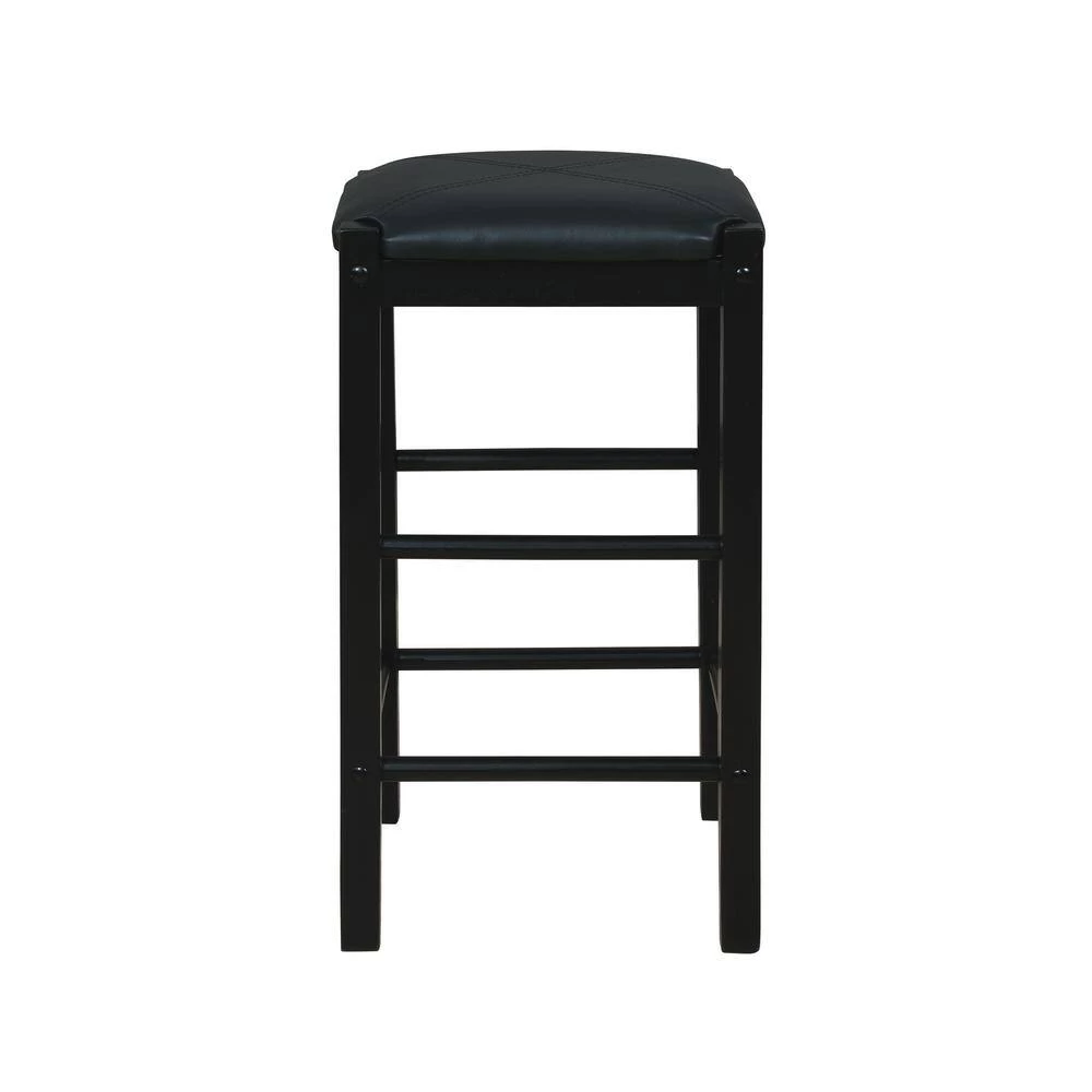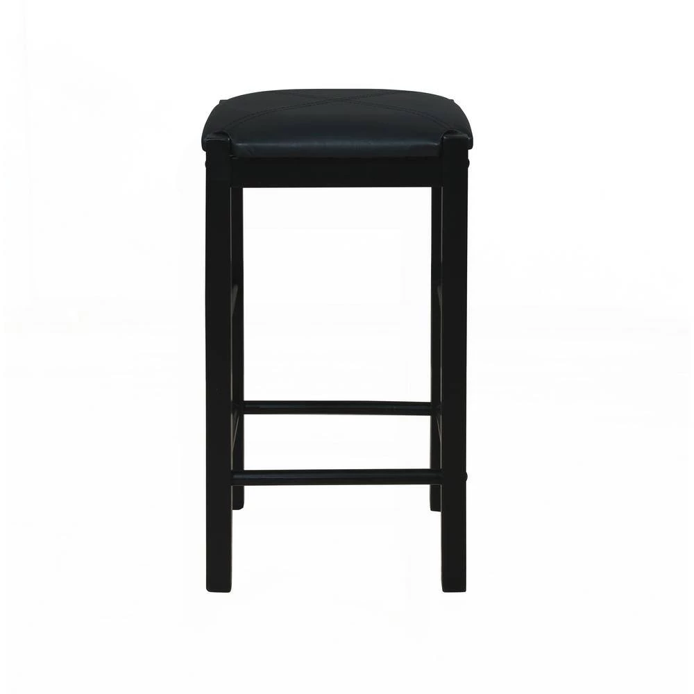 Mina black Tavern 5-Piece Counter Set with space saving convenience. This set features a elegant rectangular table on long sturdy legs with 4-backless counter height stools with padded, black faux leather upholstered seats. Made from solid woods and a faux marble top. The black finish of the base and legs gives this piece an elegant and sophisticated appeal. The stools tuck neatly under the table when not in use. Great for kitchen, dining area, den or any place your entertain.