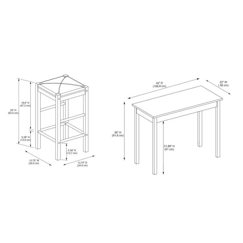 - Weight capacity: stools 275 lbs. table 100 lbs.