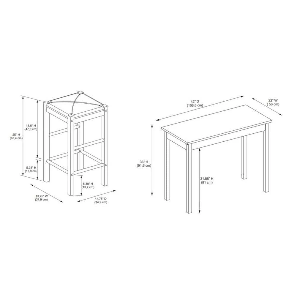 - Weight capacity: stools 275 lbs., table 100 lbs.