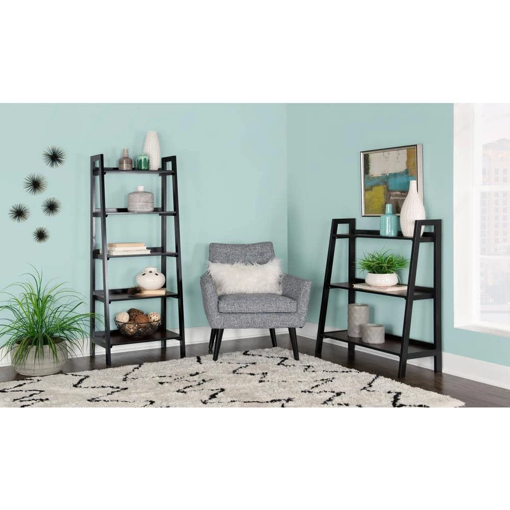 Book collectors know you can’t have too much shelving, and this Osborne 40 in. Black Cherry Wood 3 Shelf Ladder Bookcase proves the point. The transitional design complements any decor and is perfect for storage and display in practically any room, including your office, den, bedroom or kitchen. Simple and sturdy, it features an open, ladder style hardwood frame with a striking tonal black cherry finish. Place this handsome bookcase with other pieces in the same design family for a cohesive design statement.