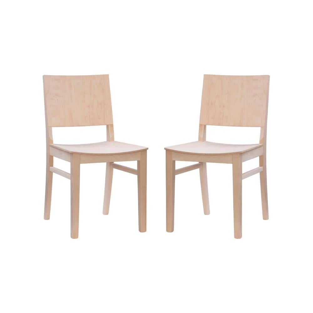 Understated yet sophisticated, the sleek silhouette of this Parker Unfinished Wood Back and Seat Dining Chair (Set of 2) provides a rousing midcentury accent to a variety of dining settings. The sturdy beechwood frame is unfinished, leaving the doors open for wide eyed DIYers to seal and stain the piece in any color that best fits the room. With a seat height of 18 in., standard dining tables of 28 in. to 30 in. are an ideal fit. The set of two arrives fully assembled and supports up to 300 lbs. each chair.