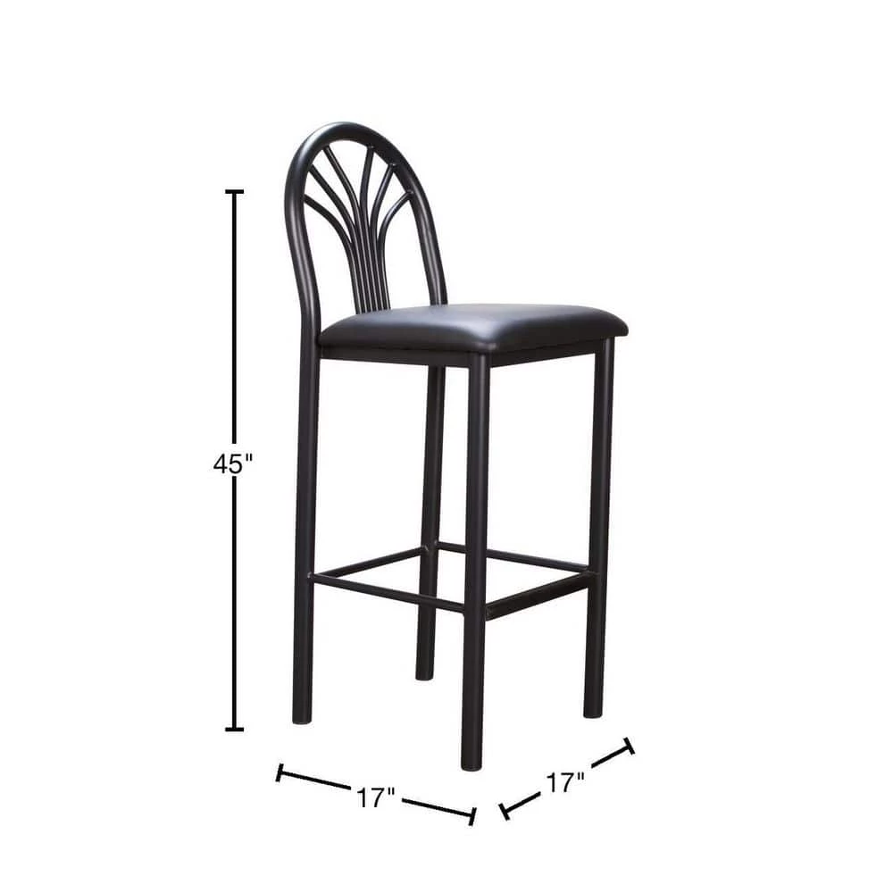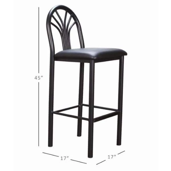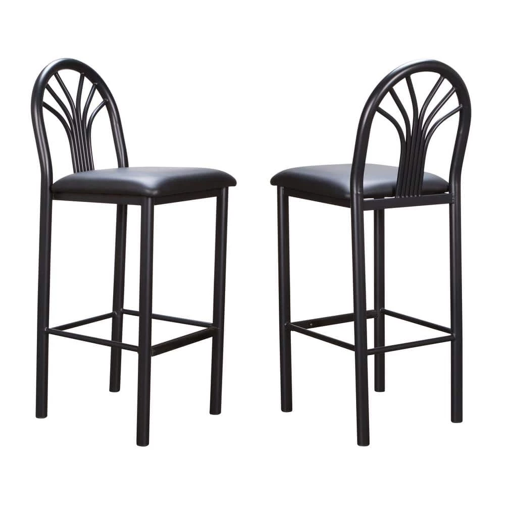 Made of commercial grade steel for strength and stability you can count on, this pair of Pella Back Vinyl Metal Barstool (2 pack) is in it for the long haul. The black frames feature ornate fretwork in the backrests, evoking a gothic aesthetic, as well as providing ample support. Plush cushions are covered in matching black vinyl for easy cleaning and create comfortable seats that guests simply won’t want to leave. Each stool arrives fully assembled and supports up to 300 lbs.