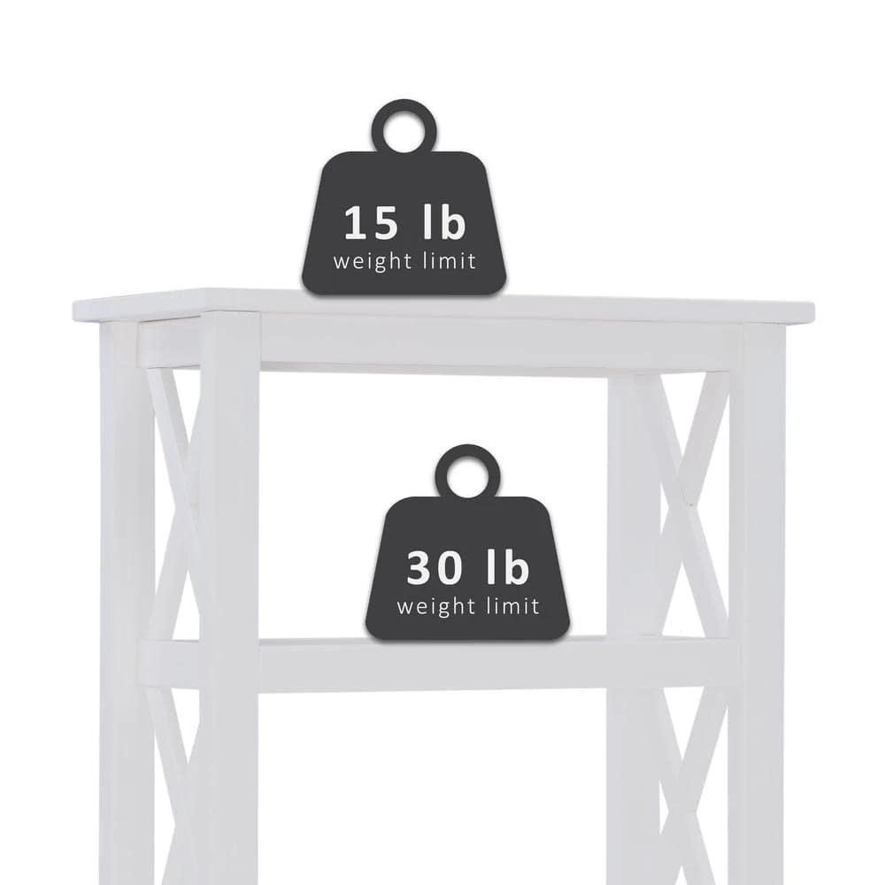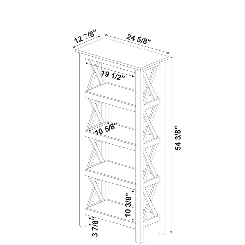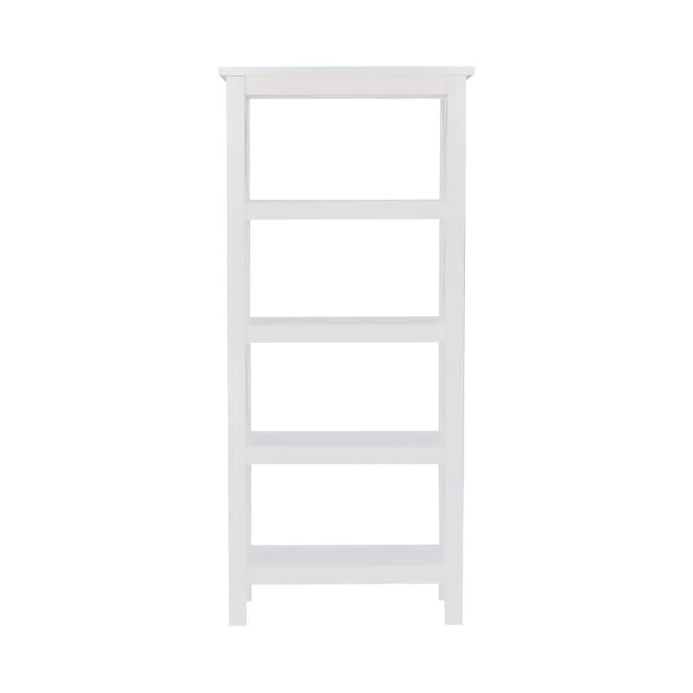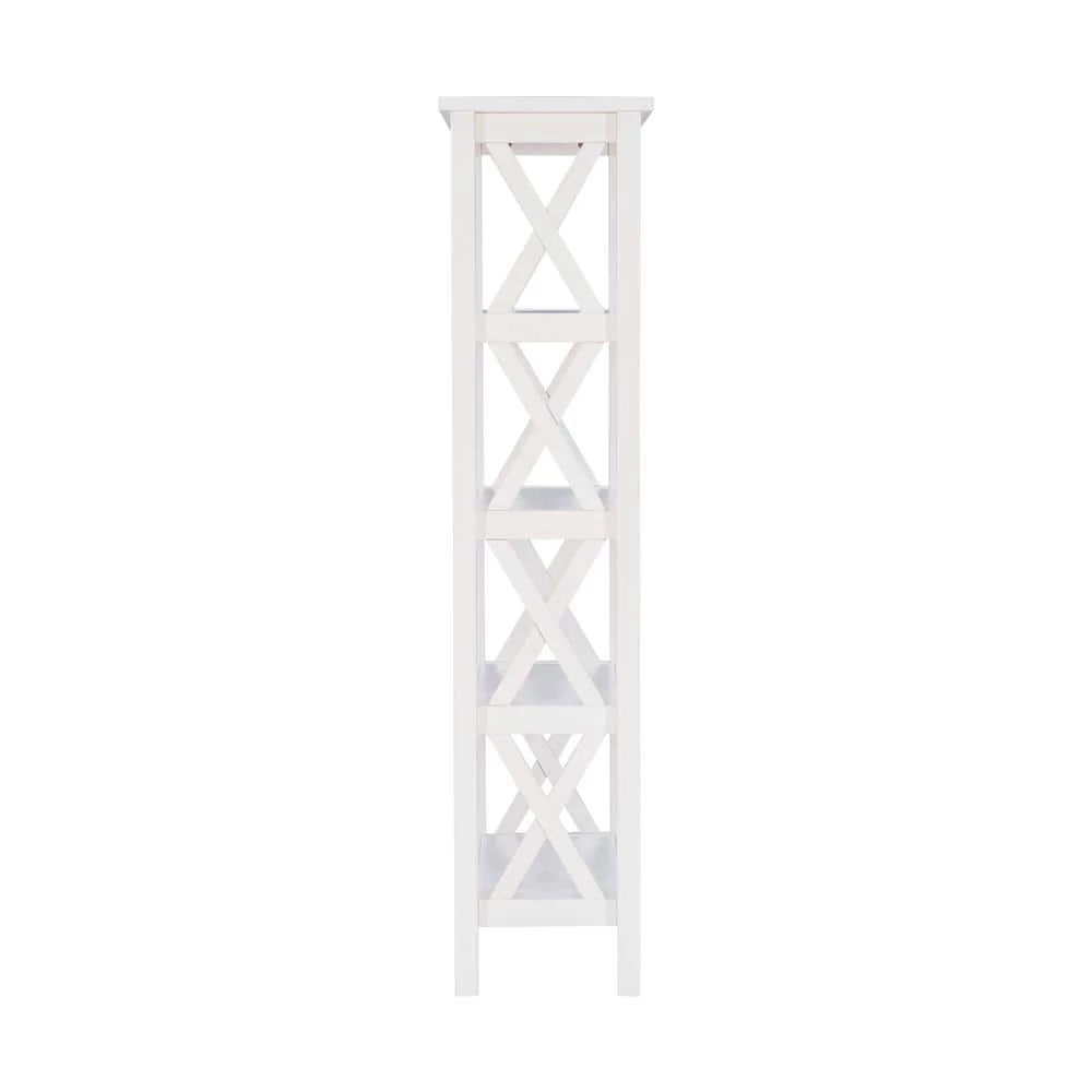 This Ramsey Antique White 4-Shelf Bookcase offers a simple yet, eye catching look that is matched with incredible durability. The multipurpose bookcase features a charming side fence design with 4-shelves that provide plentiful storage and display space. Add it to your entryway, living room, bedroom, bathroom, office or kitchen. It is crafted from solid pine with beautifully visible wood grain. An antique white finish allows this piece to easily complement any home decor.